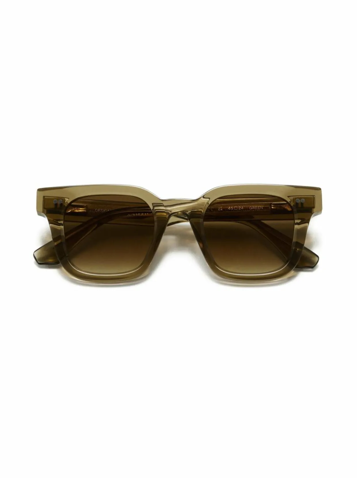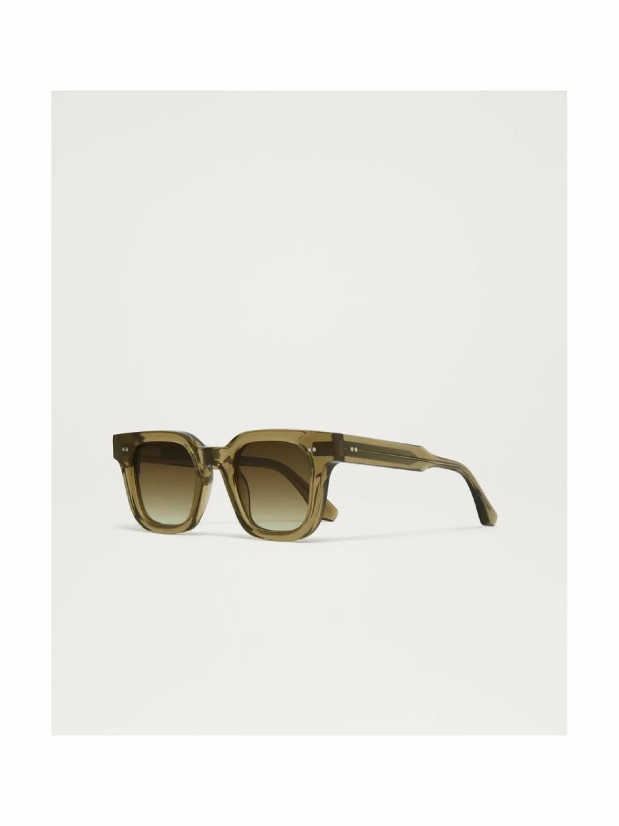 Aurinkolasit luovat dynaamisen kontrastin vahvalla suorakaiteen muotoisella kehyksellä ja ohuilla sangoilla. Valmistettu käsin ensiluokkaisesta Acetate Renew™ -asetaatista, joka koostuu 42 % biopohjaisesta ja 28 % sertifioidusta kierrätysmuovista, ja niissä on CHIMI-metalliydin. Ne on suunniteltu hieman pyöristetyillä UV-suojaavilla CR39-linsseillä. Kehysten leveys 148 mm, nenäsilta 24.5 mm, sankojen pituus 155 mm. Toimitetaan kovassa kotelossa joka sisältää suojapussin ja mikrokuituliinan.