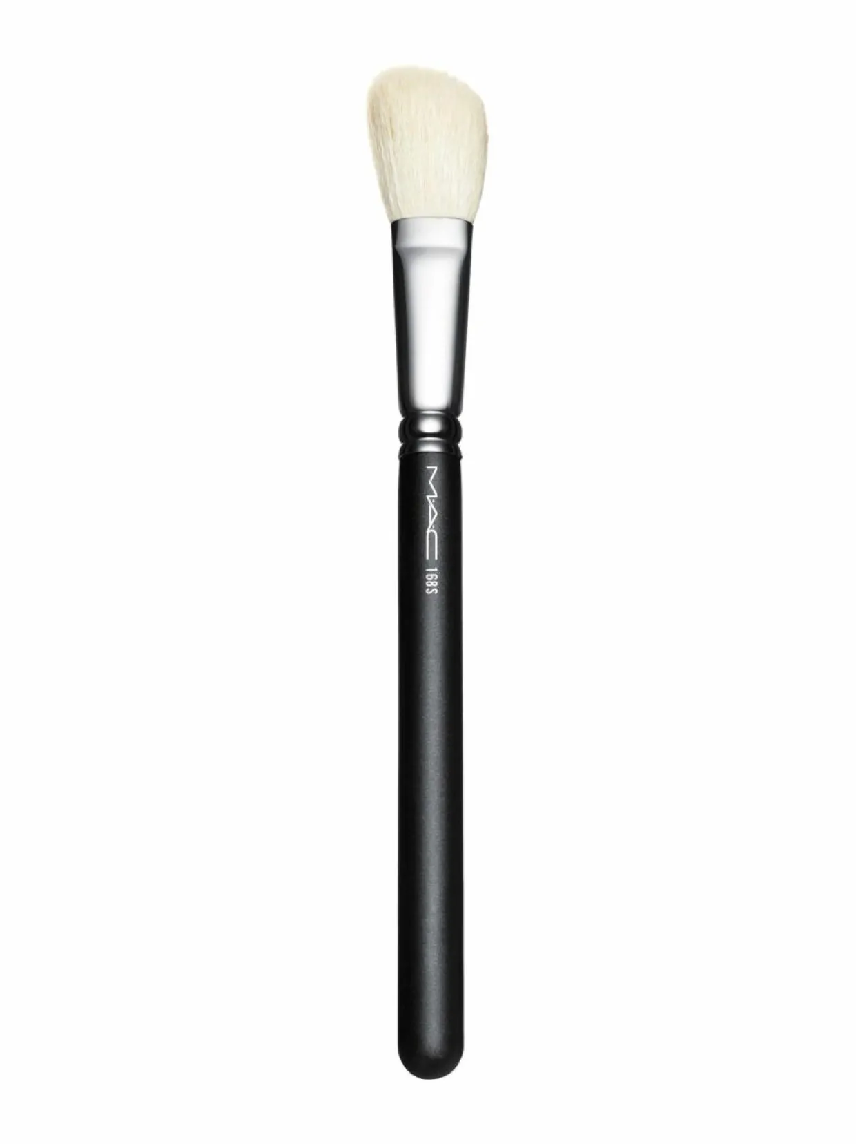 Suuren MAC 168 Large Angled Contour -meikkisiveltimen pehmeät ja jämäkät harjakset on leikattu viistoon, jolloin harjaspäällä voi levittää ja kärjellä korostaa. Sopii erityisen hyvin poskipäiden korostamiseen.
