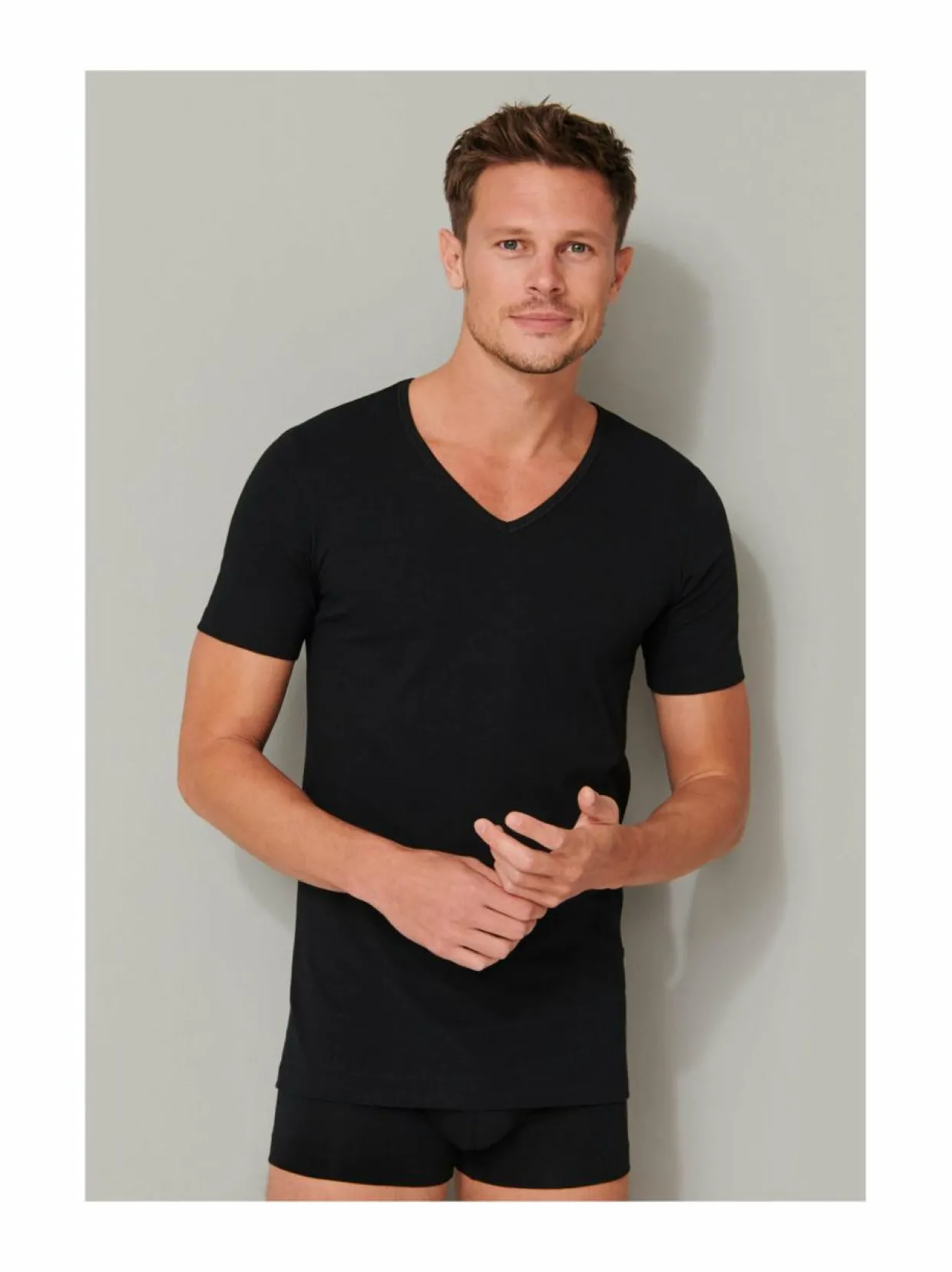 Schiesser 2-pack V-neck -paita joustavasta ja pehmeästä puuvillasekoitteesta.