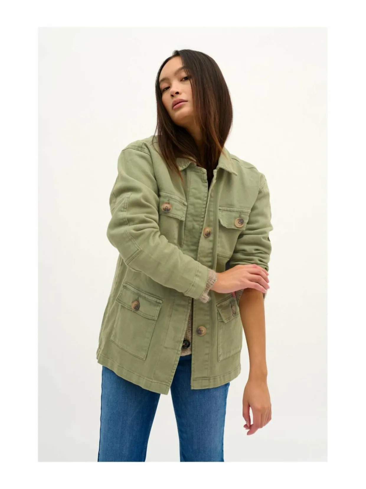 Materiaali98 % puuvilla, 2 % elastaani Hoito-ohjeetKonepesu 30 °C PesuohjeetKonepesu Pesulämpötila30 °C ValmistusmaaKiina Väri101969 DUSTY OLIVE WASH Avainsanattakki, kevyt takki, paitatakki naiset, my essential wardrobe, välikausitakki