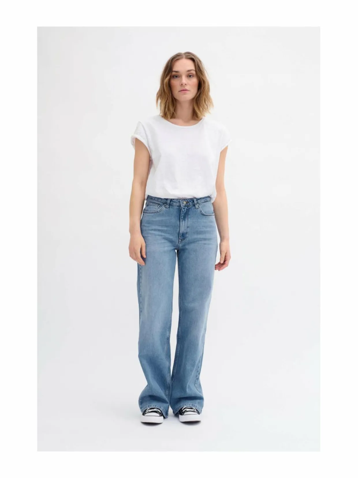 Mukavan korkeavyötäröiset ja leveälahkeiset farkut My Essential Wardrobe merkiltä. Tämä farkkumalli on klassisesti viisitaskuinen ja vyötärökaitaleelta löytyvät myös vyölenkit. 35 The Louis -farkut sopivat hyvin täydentämään vapaa-ajan pukeutumistyyliä.