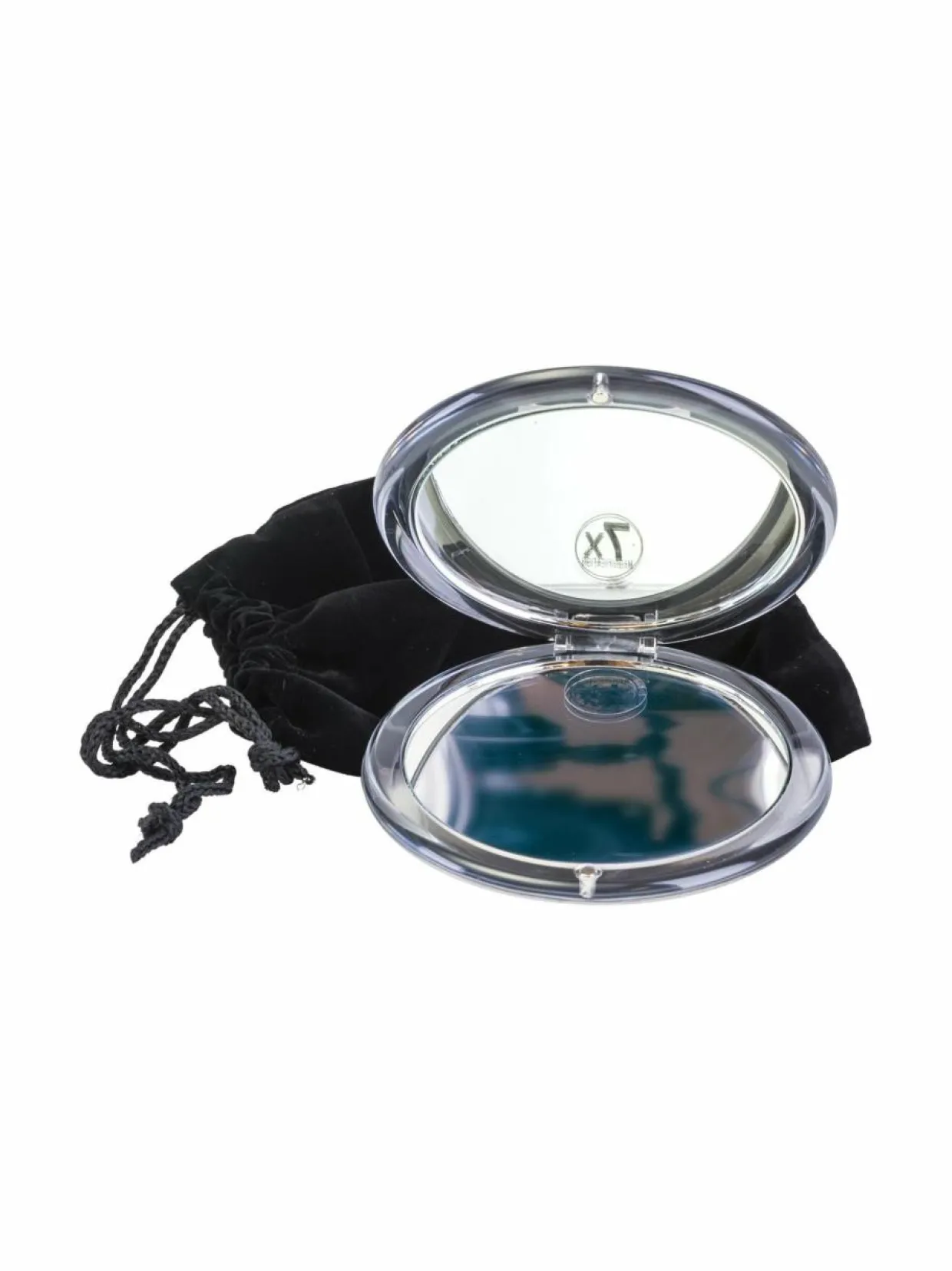 Kaksiosainen käsilaukkupeili normaalipeilillä sekä 7-kertaisella suurennoksella yksityiskohtien tarkastelua varten. Mukana samettipussi peilin säilytystä varten. Suurentava kerroin on suuntaa antava, tärkeintä on löytää itselle sopiva voimakkuus. Testaa peiliä aina ilman silmälaseja. Hyvän optiikkansa ansiosta peilin käyttö ei rasita silmiä tai tee kaksoiskuvia eikä aiheuta päänsärkyä. Huom! Peili avautuu saranoistaan ”yli” muodostaen kaksi erillistä peiliä.