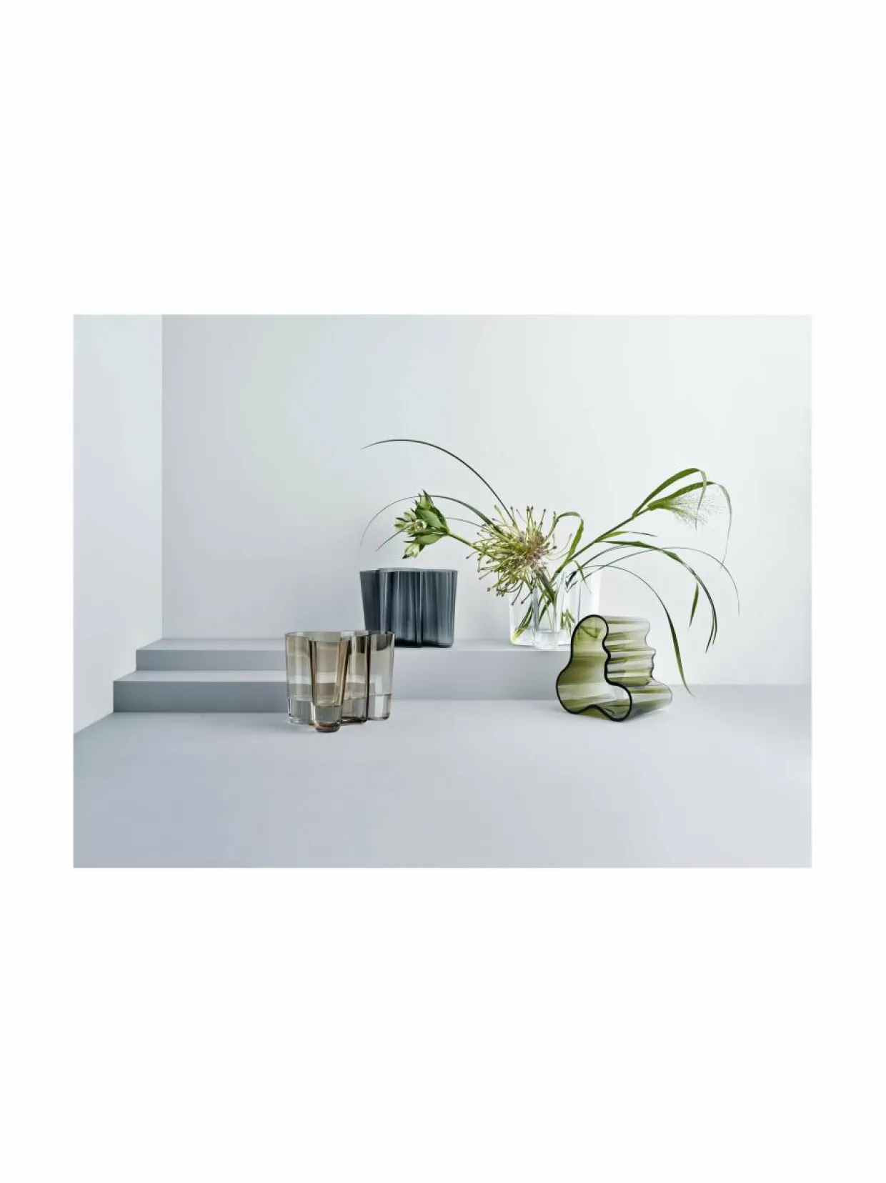 Alvar Aalto voitti epäsymmetriseen aaltoilevaan muotoon perustuvalla muotoilullaan vuoden 1937 Pariisin maailmannäyttelyyn liittyvän suunnittelukilpailun. Vuosikymmenien kuluessa Aallon suunnittelemista esineistä on tullut pohjoismaisen muotoilun klassikoita.Jokainen Aalto-maljakko valmistetaan yksittäin monivaiheisessa tuotantoprosessissa Iittalan lasitehtaalla. Maljakko suupuhalletaan, katkaistaan lasimassasta käsin ja hiotaan lopulliseen muotoonsa.Kirkas maljakko on monikäyttöinen ja tyylikäs sisustuselementti. Klassinen lahjaidea.