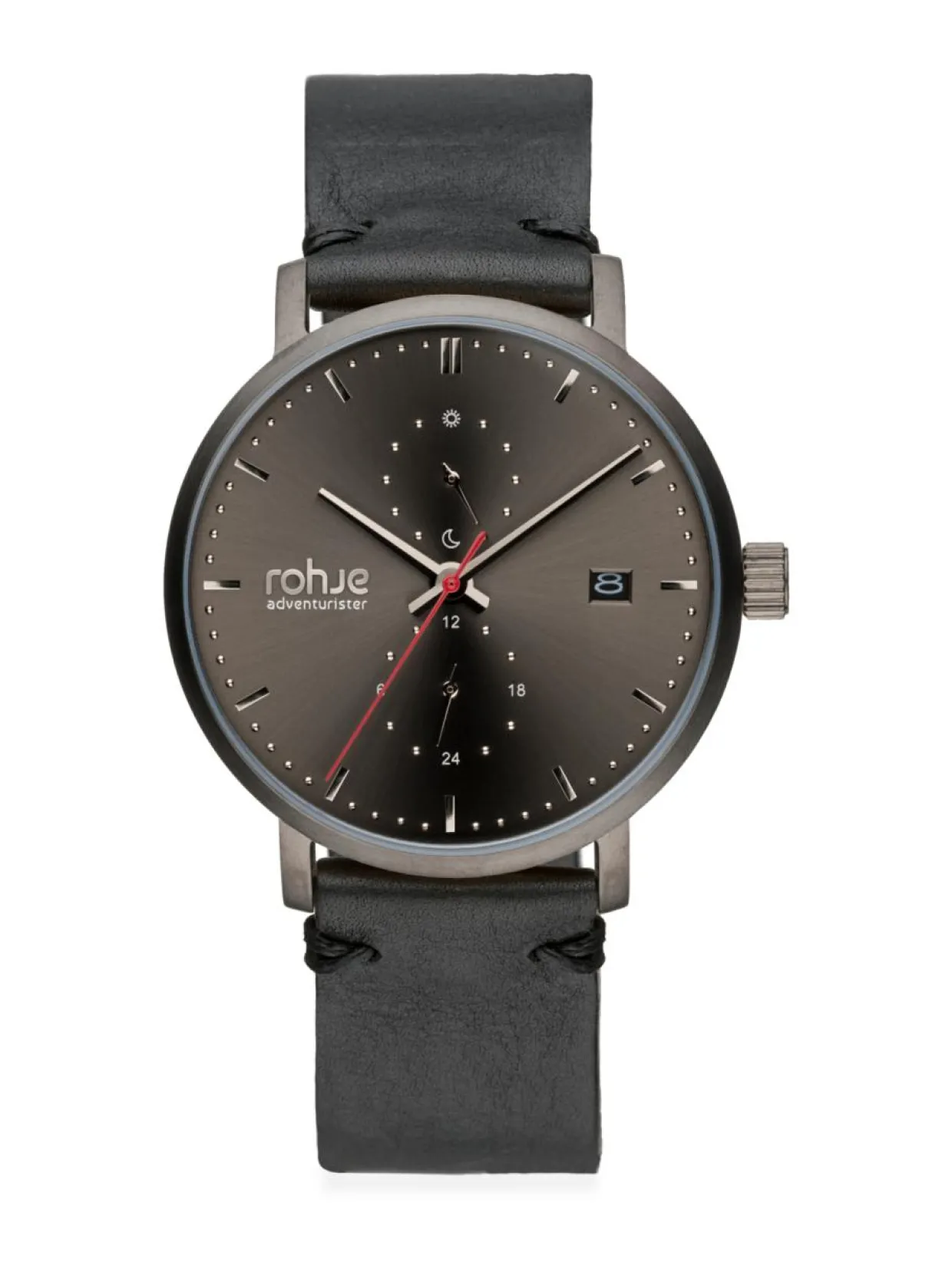 Rohje-rannekello on suomalaista muotoilua. Hillityn ulkoasunsa ansiosta Rohje Adventurister Dark poronnahkaisella rannekkeella sopii tilanteeseen kuin tilanteeseen aina luonnosta urbaaniin ympäristöön, juhlaan sekä arkeen.
