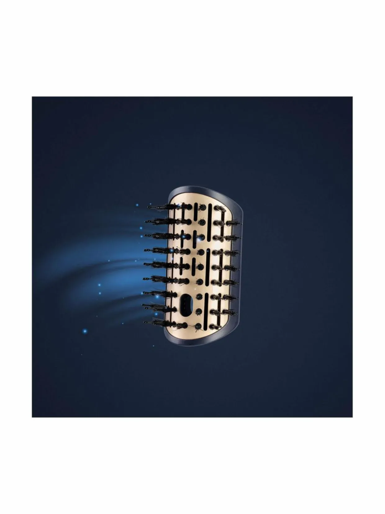 Kaareva ja soikea harja, jossa on täydellinen yhdistelmä hiuksia selvittäviä ja kiiltoa antavia harjaksia, jotka silottavat, tuuheuttavat ja varmistavat vaivattoman lopputuloksen.