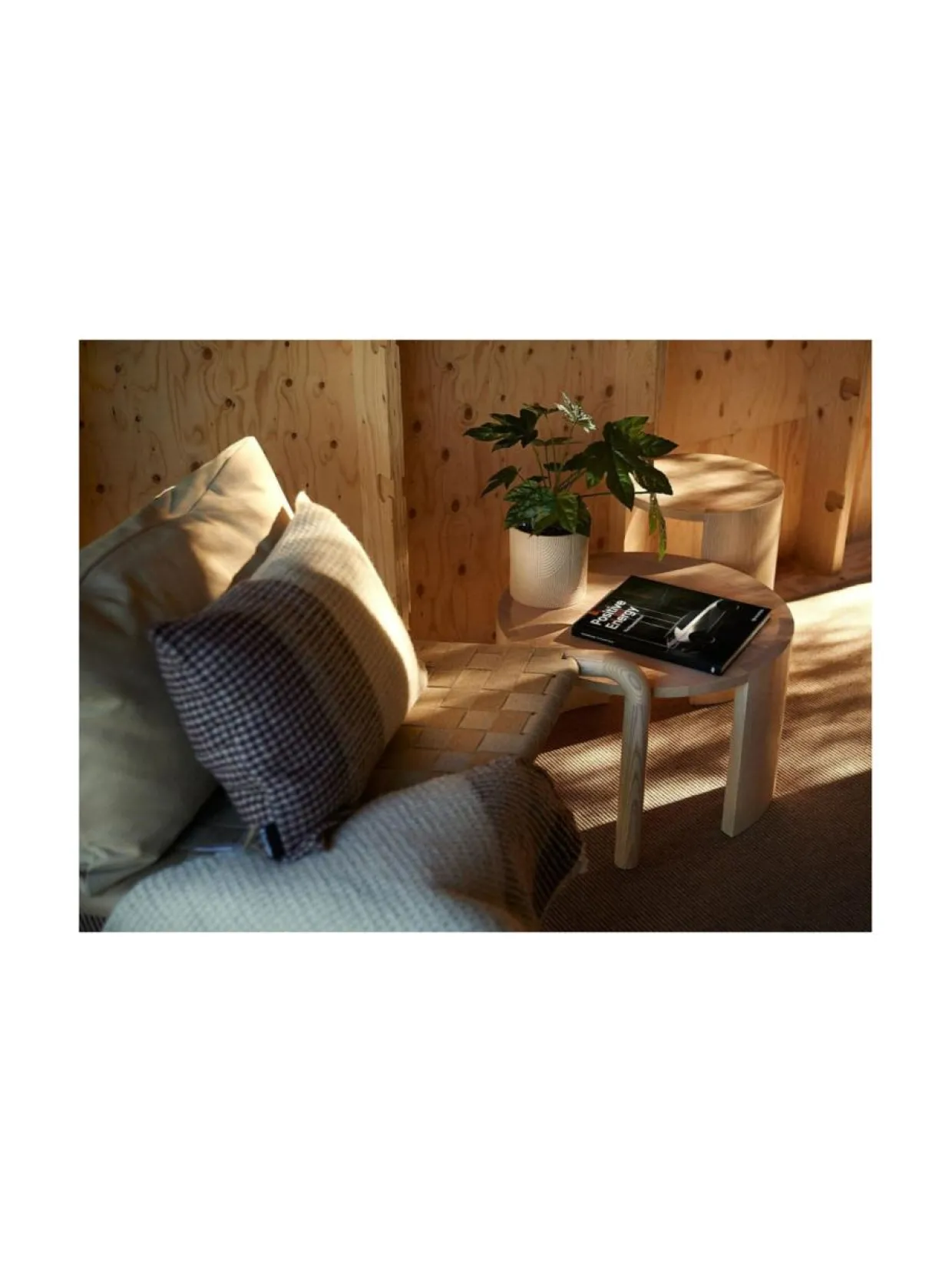 Joanna Laajisto suunnitteli tämän viehättävän massiivisaarnisen kalusteen alunperin osaksi Turun saaristossa sijaitsevan Villa Airisto -majatalon sisustusta. Saaristolaisuus näkyykin harkitussa muotokielessä, joka korostaa kauniisti sohvapöydän jalkarakenteen epäsymmetristä muotoa ja antaa tilaa puun luontaiselle ilmeelle.
