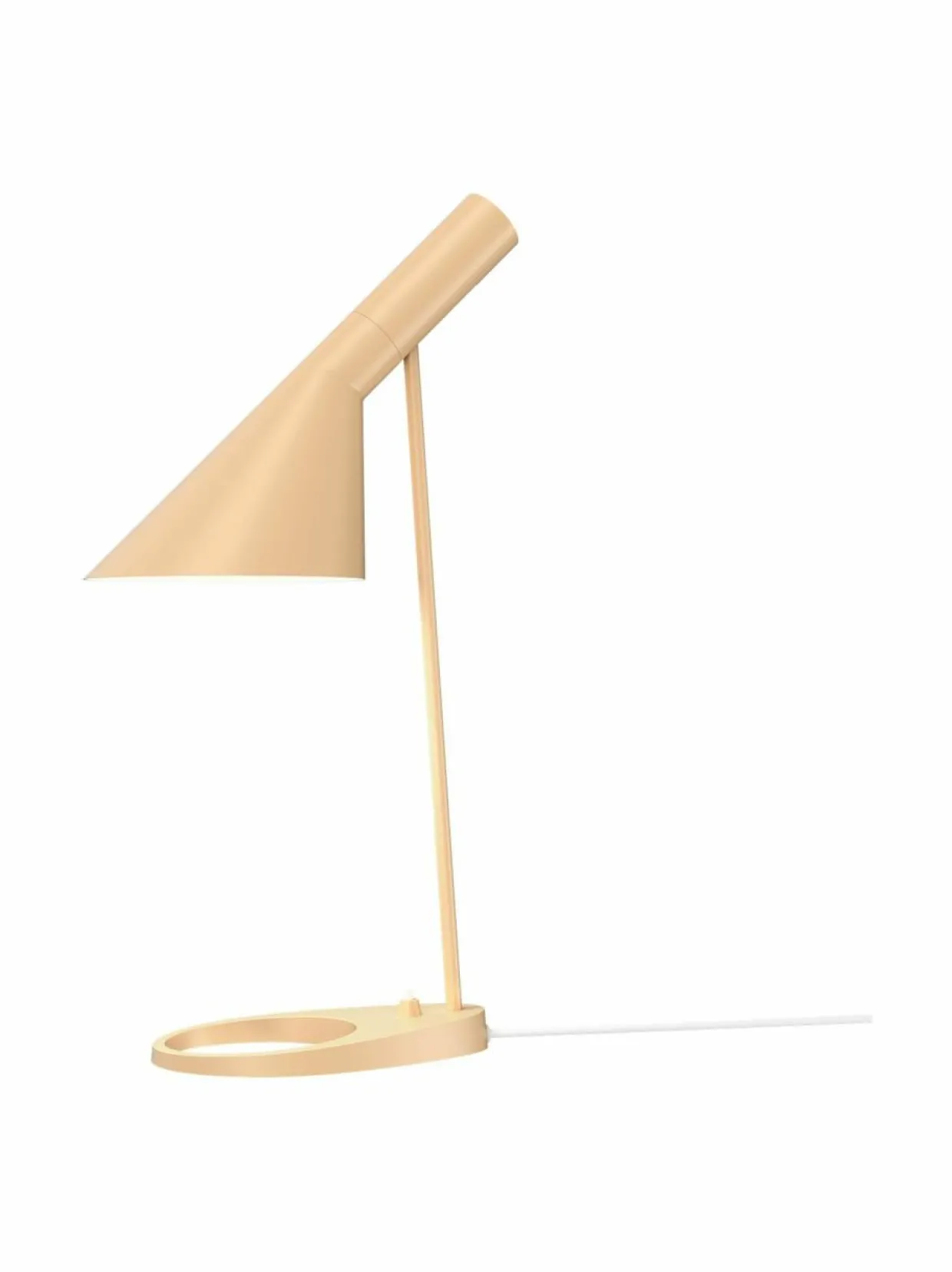 Kööpenhaminan SAS Royal Hotel -hotellia varten vuonna 1957 suunniteltu AJ-valaisin on Arne Jacobsenin ikonista muotoilua. Muotoilu on graafista ja selkeää, mikä antaa sille ajattoman ilmeen, joka sopii erilaisiin väripaletteihin modernien sisustustrendien mukaisesti.AJ-pöytävalaisin säteilee alaspäin suunnattua valoa, ja varjostimen kulmaa voidaan säätää käyttäjän tarpeiden mukaan. Varjostin on maalattu sisäpuolelta valkoiseksi, ja valo on yhtenäinen ja pehmeä.