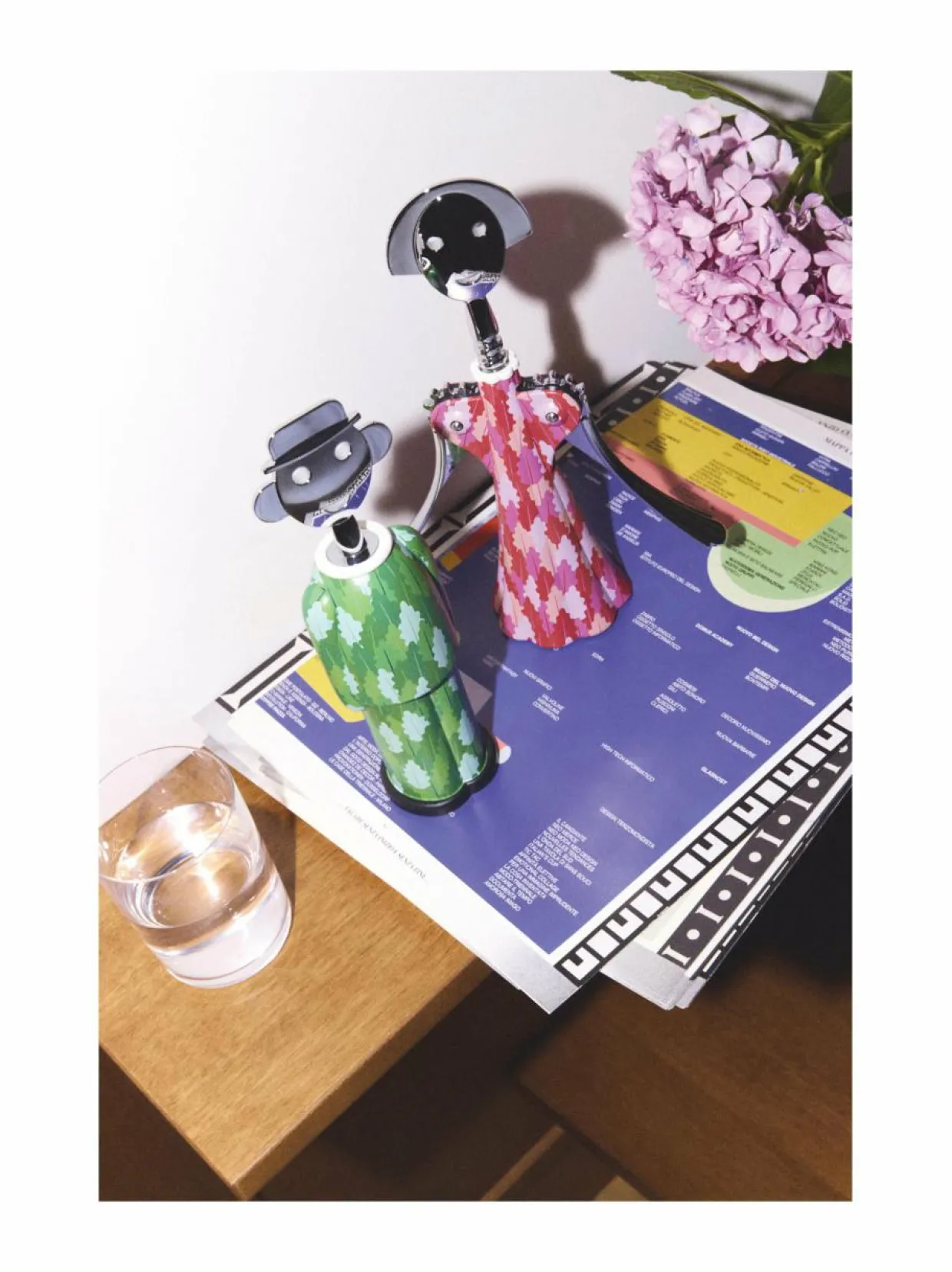 Alessin Alessandro M. -korkkiruuvin on suunnitellut Alessandro Mendini yhdessä Fulvia Mendinin kanssa. Tämä erityinen versio juhlistaa kahden korkkiruuvihahmon tarinaa, jossa hahmot tanssivat metsän keskellä etsimässä toiveita ja salaisuuksia. Alessandro M. on pukeutunut uuteen puuasuun, jossa lehtikuvio korostaa korkkiruuvin pehmeää ja herkkää muotoilua vihreän eri sävyissä.