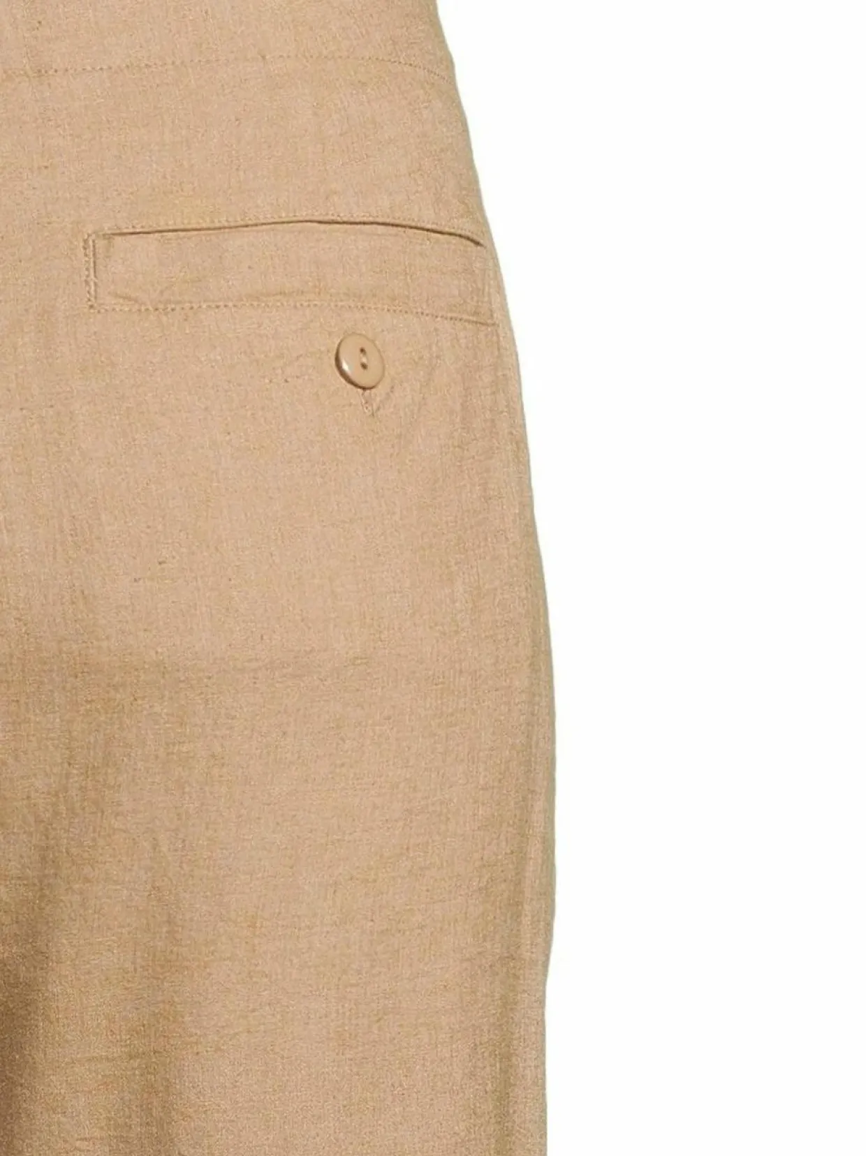 Nämä housut ovat valmistettu pellava-viskoosisekoitteesta, ja niissä on leveät lahkeet. Housuissa on kaksi taskua edessä ja kaksi taskua takana. Housut ovat mukavat ja hengittävät. Ne sopivat täydellisesti kevyempään pukeutumiseen.