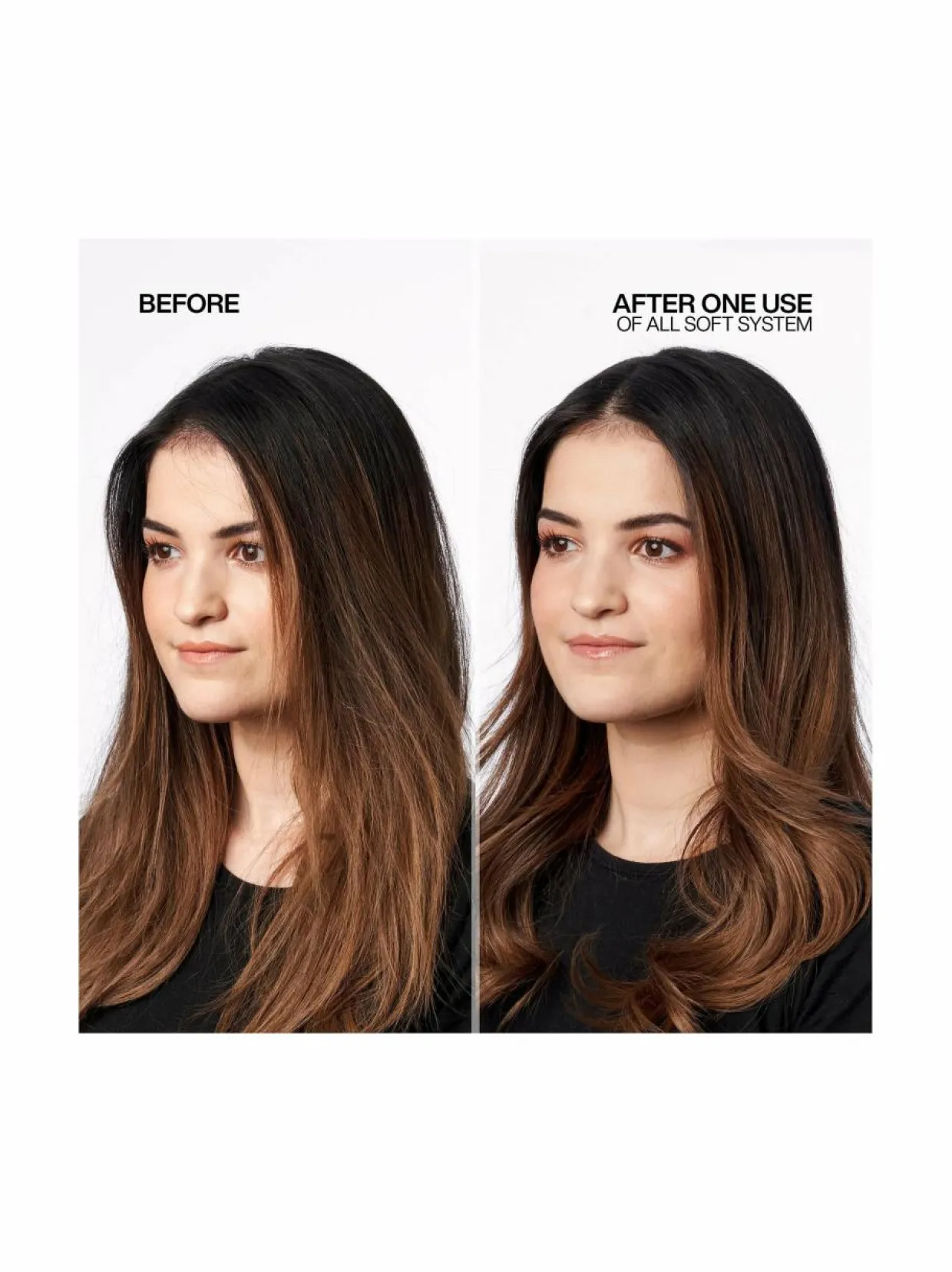 Redken All Soft Heavy Cream on tehokas ja hoitava hiusnaamio kuiville ja hauraille hiuksille. Tämä hiusnaamion koostumus sisältää Redkenin Moisture Complex -ainesosayhdistelmän ja arganöljyä. Se antaa hiuksille säteilevää kiiltoa ja pehmeyttä.Levitä hiusnaamiota pyyhekuiviin hiuksiin All Soft -shampoolla pesun jälkeen. Anna vaikuttaa 5 minuuttia. Huuhtele hiukset huolellisesti. Viimeistele Argan-6 Oil -hiusöljyllä. Redken keskittyy kestävään kehitykseen. Redkenin hiustenhoitotuotteiden pullot ovat kierrätettäviä ja niissä on käytetty jopa 93 % kierrätettyä muovia.