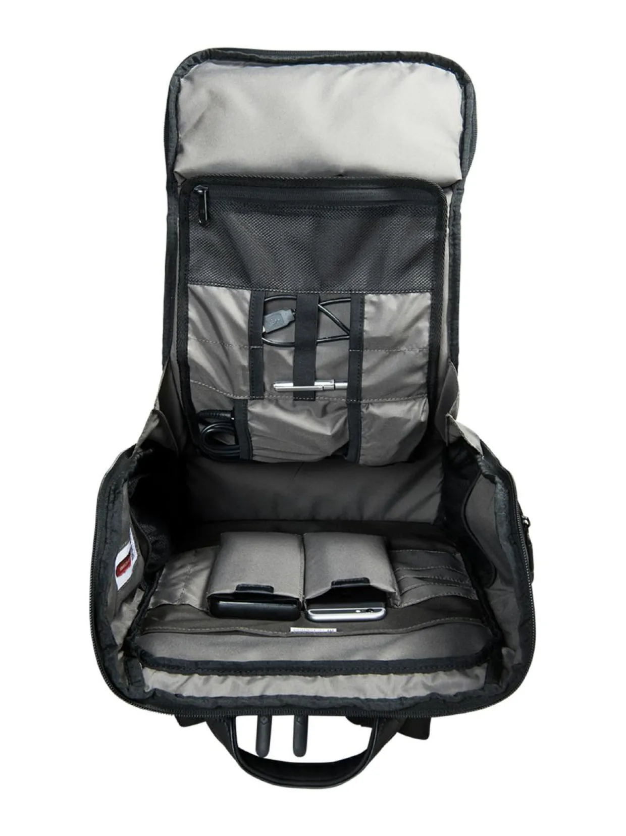 Sveitsin armeijan linkkuveitsen inspiroimana yhdistimme klassisen alppirepun moderneihin business-ratkaisuihin. Tämä minimalistinen ja tyylikäs reppu pitää sisällään monipuoliset organisointitilat, kuten esimerkiksi useita vetoketjutaskuja, kiinnityskoukkuja ja erillisen pehmustetun säilytystilan sekä 15 tuuman kannettavalle tietokoneelle että tabletille.