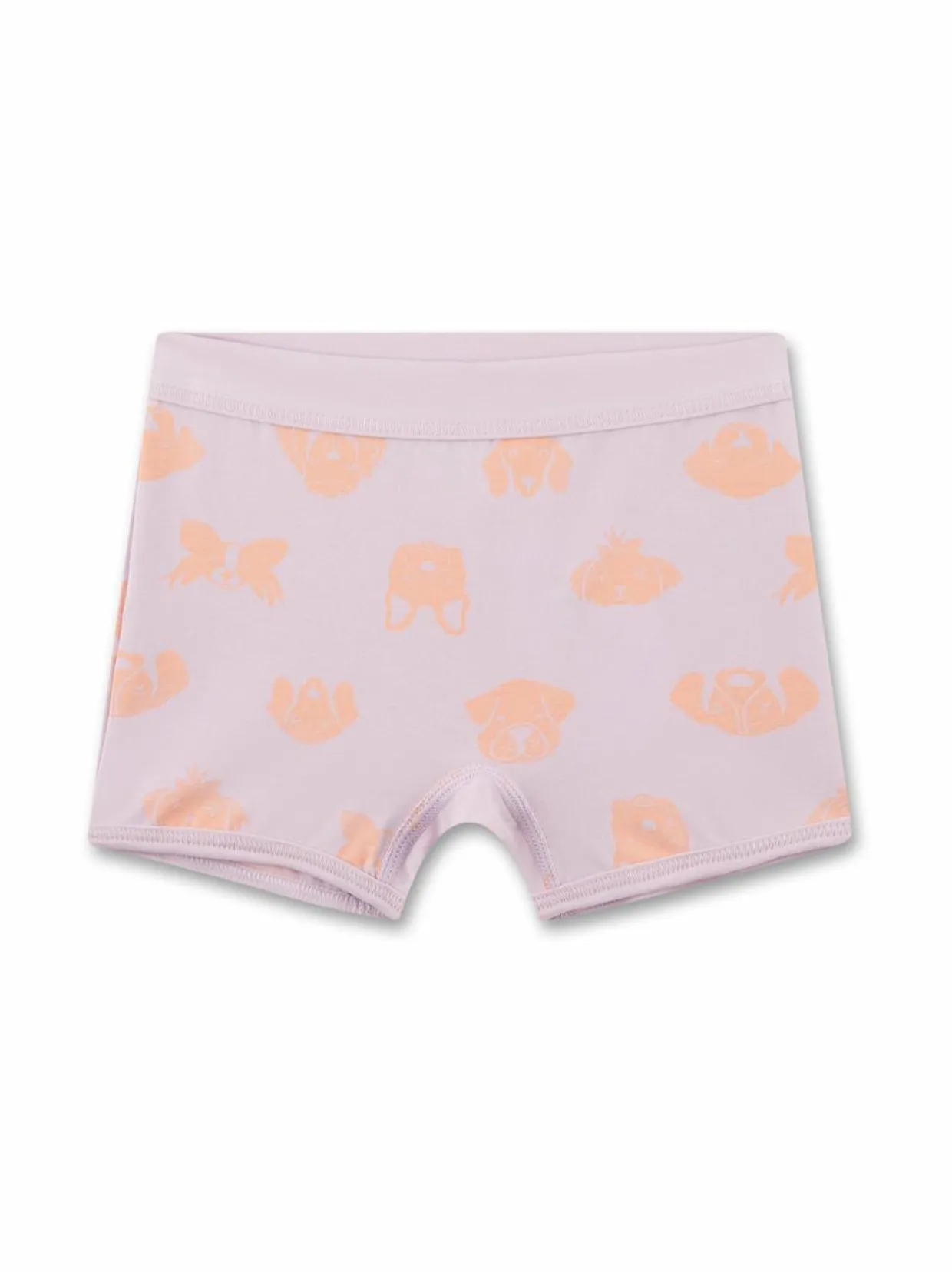 Lasten alushousut, joissa on hauska koiran painatus. Shortsimallisten alushousujen vyötäröllä on pehmeä kuminauha ja lahkeissa on joustavat terereunukset. Valmistettu pehmeästä ja hengittävästä luomupuuvillasta, joka on mukava käyttää.