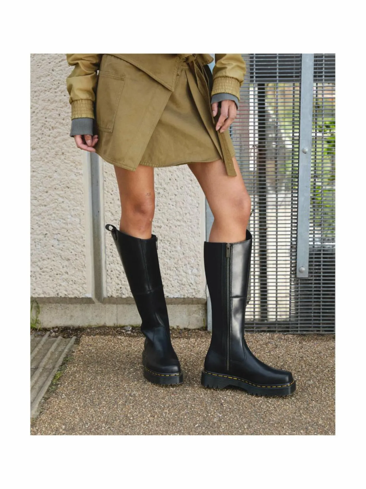 Dr. Martensin pitkävartisissa Amaayah-saappaissa on himmeästi kiiltävä nahkapinta. Vetoketju sivussa helpottaa saappaiden pukemista ja riisumista, ja tukevat pohjat takaavat mukavuuden koko päivän ajan. Saappaiden korkea varsi antaa niille elegantin ilmeen, joka sopii sekä arkeen että juhlaan. Ikoninen keltainen ommel tuo esiin brändin perinteisen tyylin.
