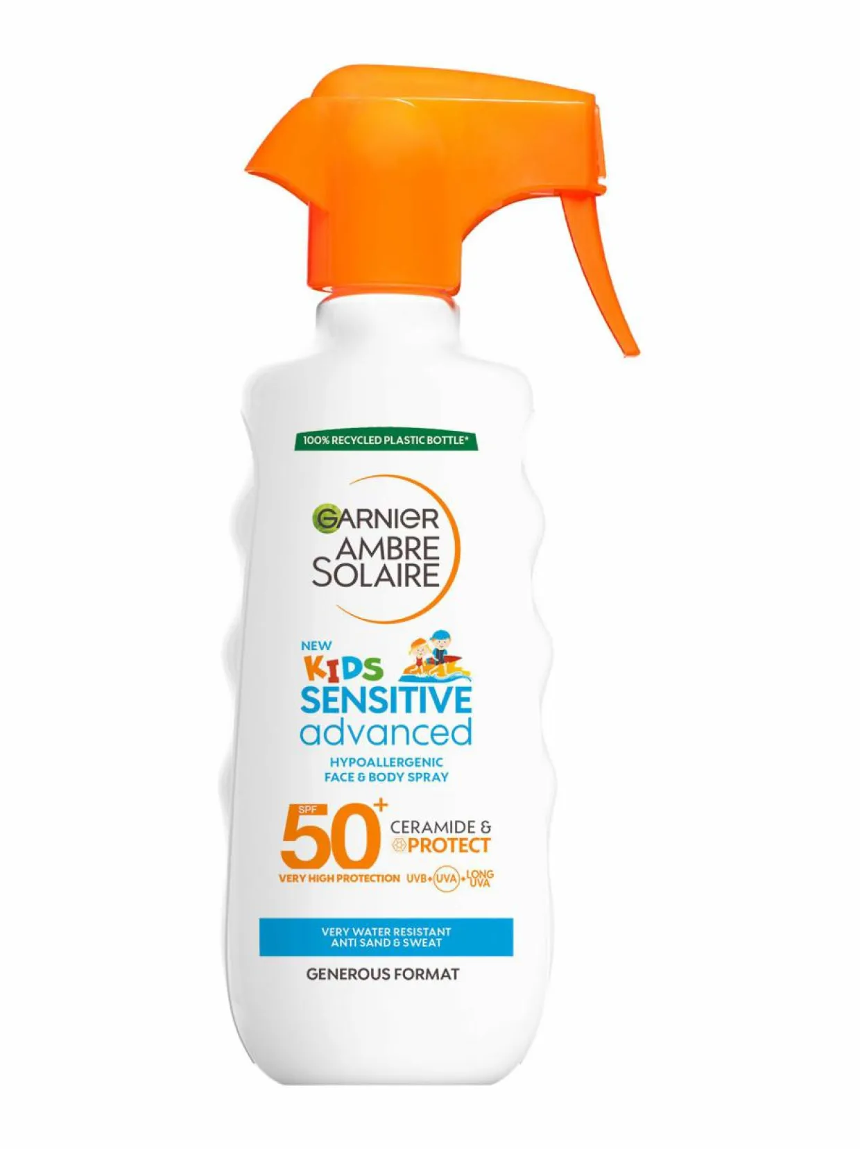Garnier Ambre Solaire Sensitive Advanced Kids SPF50+ -aurinkosuojasuihke antaa suojaa UVB-UVA- ja pitkiä UVA-säteitä vastaan. Hypoallergeeninen koostumus on kehitetty herkälle iholle. Kevyt koostumus on vedenkestävä. Levitä aurinkosuojatuotetta ennen aurinkoon menoa. Jos tuotetta käyttää liian vähän, suojateho pienenee merkittävästi. Levitä tuotetta usein ja runsaasti vähintään kämmenellinen suojatehon säilyttämiseksi erityisesti uimisen, hikoilun tai kuivaamisen jälkeen.