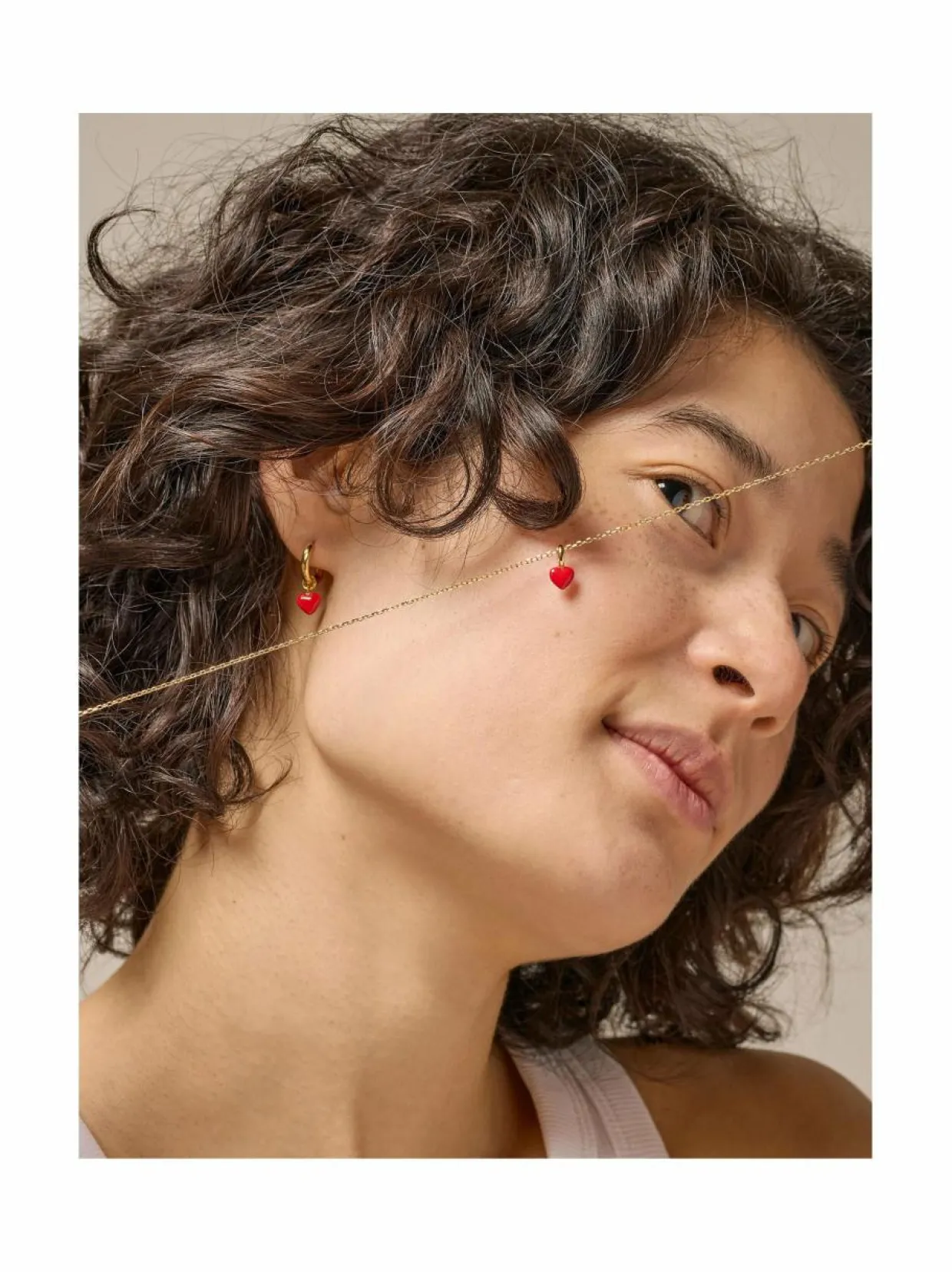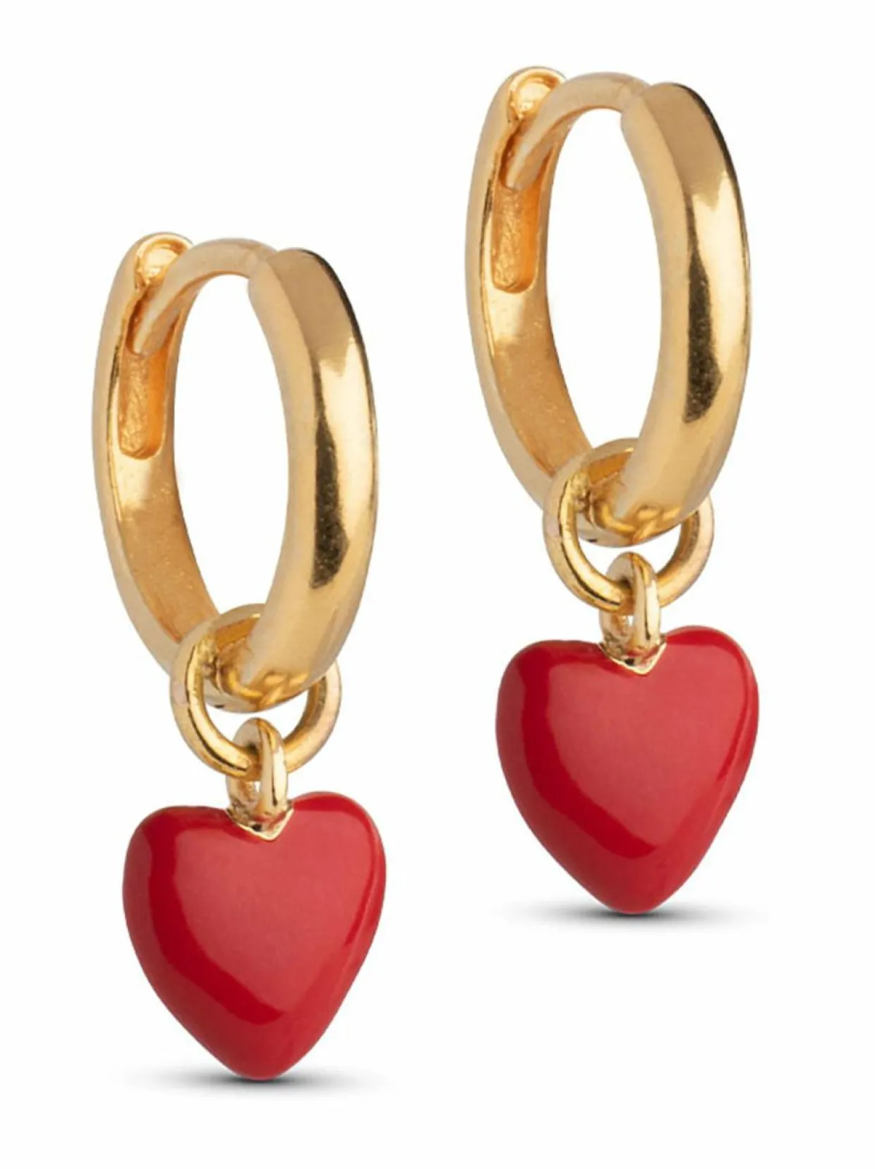 ENAMEL Copenhagenin elegantit Amore-korvakorut ovat 18k kullattua kierrätettyä 925 sterling-hopeaa. Yksityiskohtana suloinen sydänriipus. Korvakorut ovat ihanteellinen lisä jokapäiväiseen tyyliisi. Ne sopivat erinomaisesti niin arkeen kuin juhlaan.