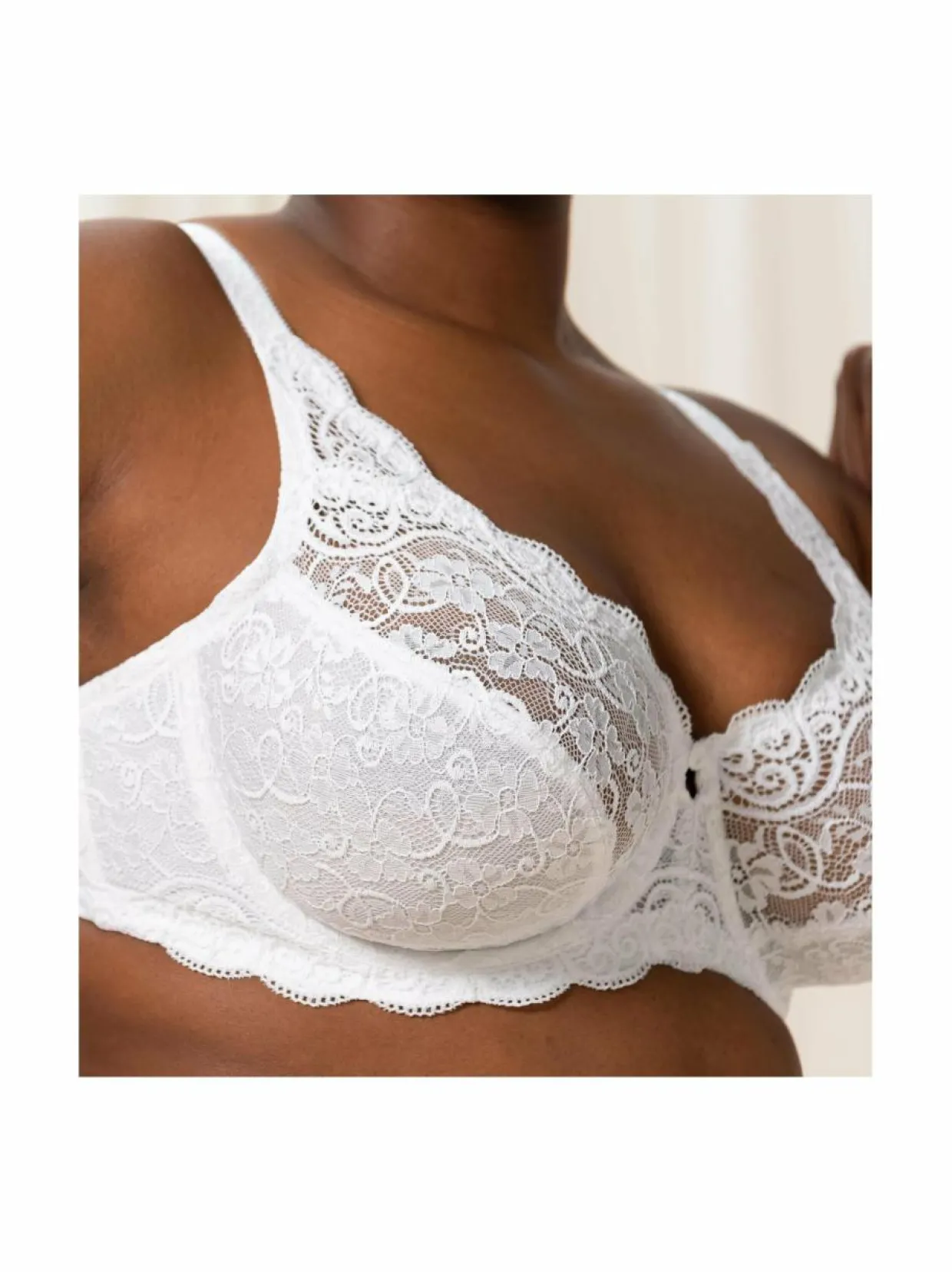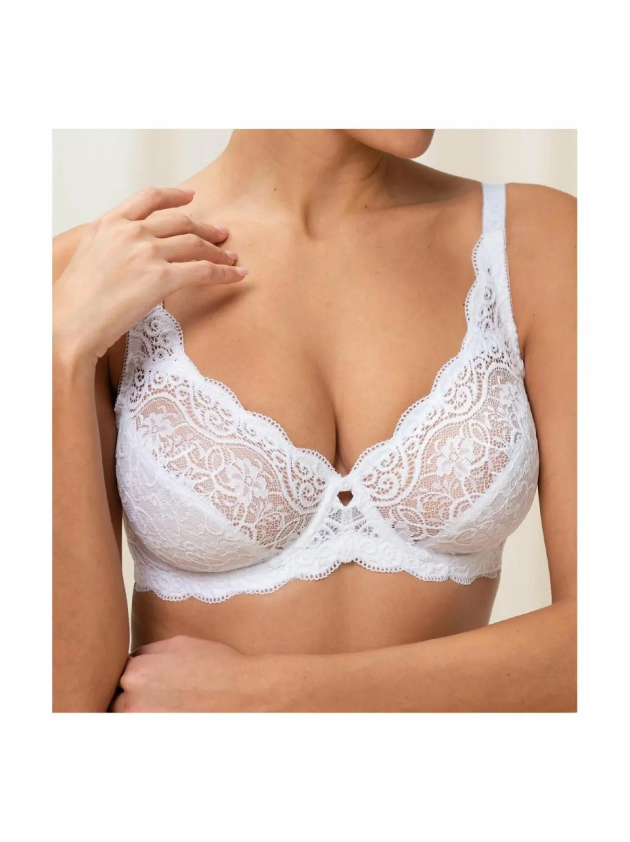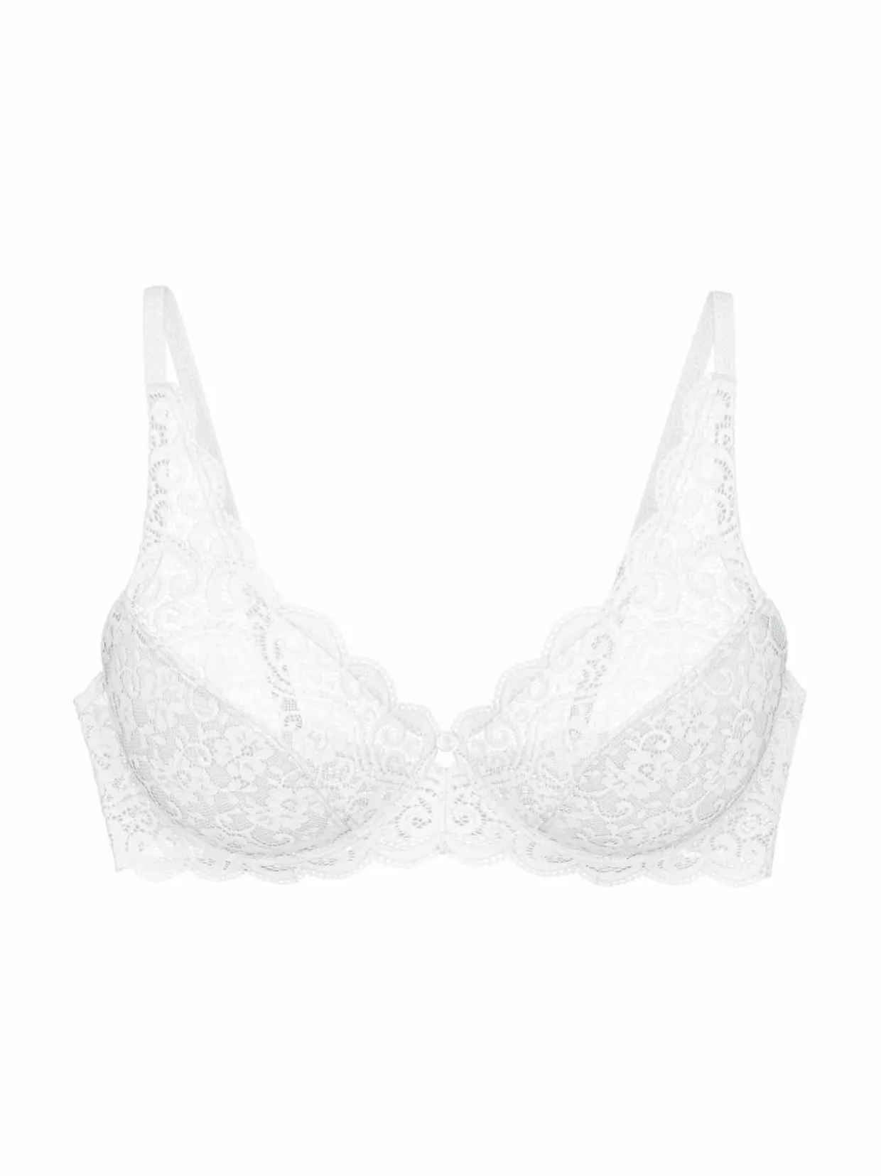 Triumphin Amourette-rintaliivit ovat herkkää pitsiä. Nämä kaarituelliset liivit muotoutuvat kauniisti vartalon mukaan ja tuovat asuusi ripauksen naisellisuutta. Säädettävät olkaimet ja hakaskiinnitys tarjoavat täydellisen istuvuuden ja hyvän tuen koko päivän ajan.