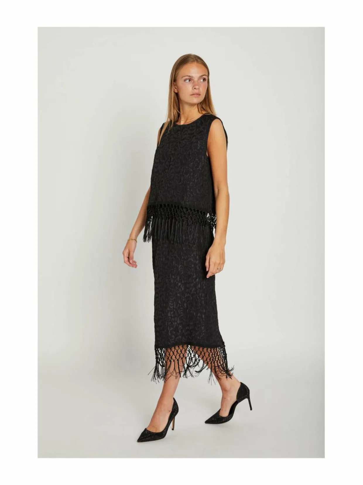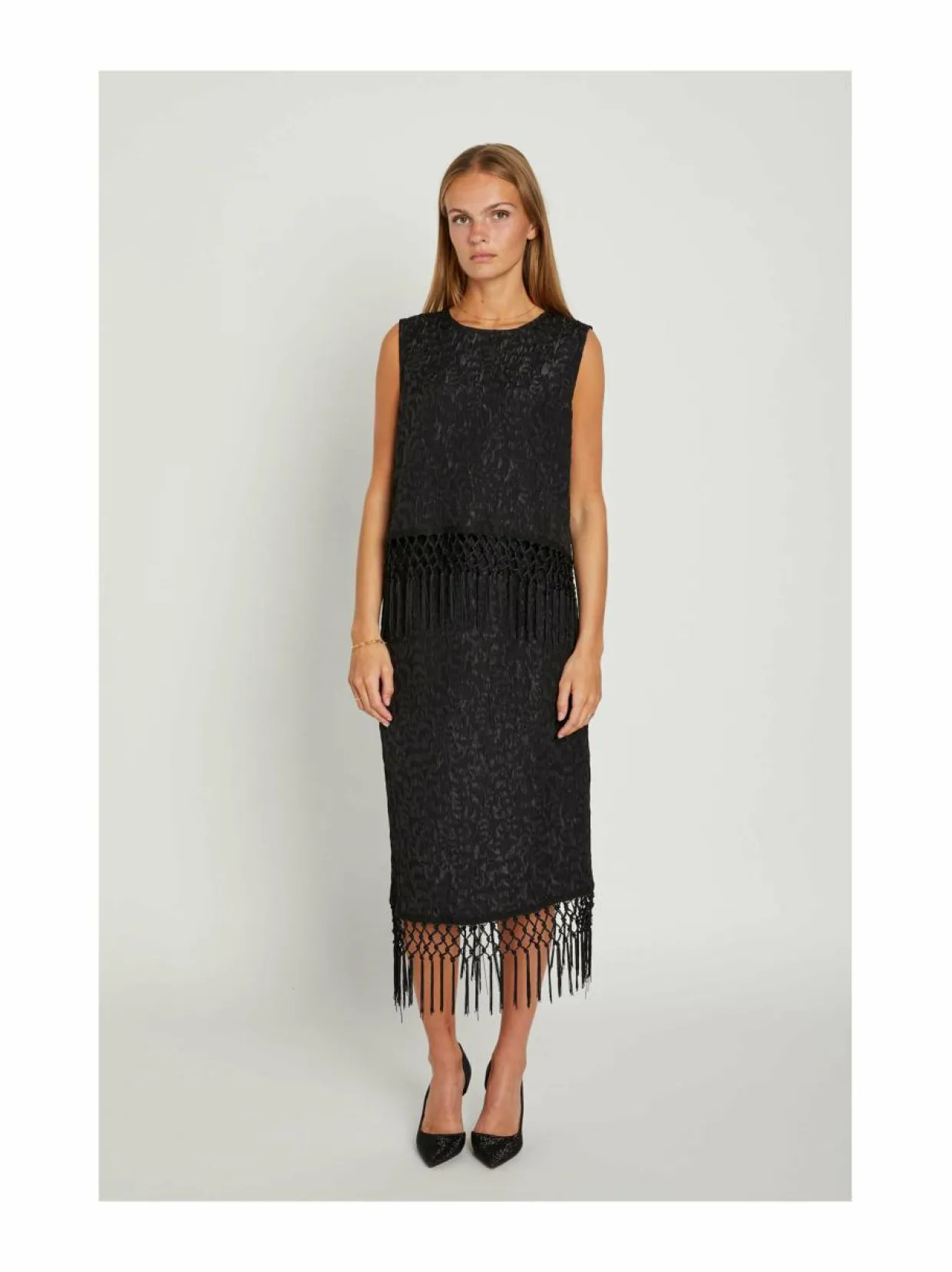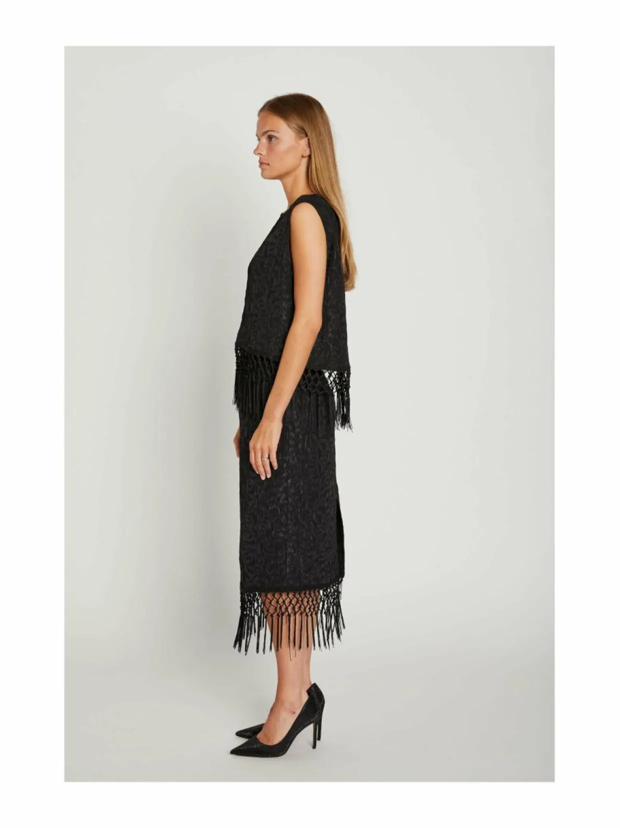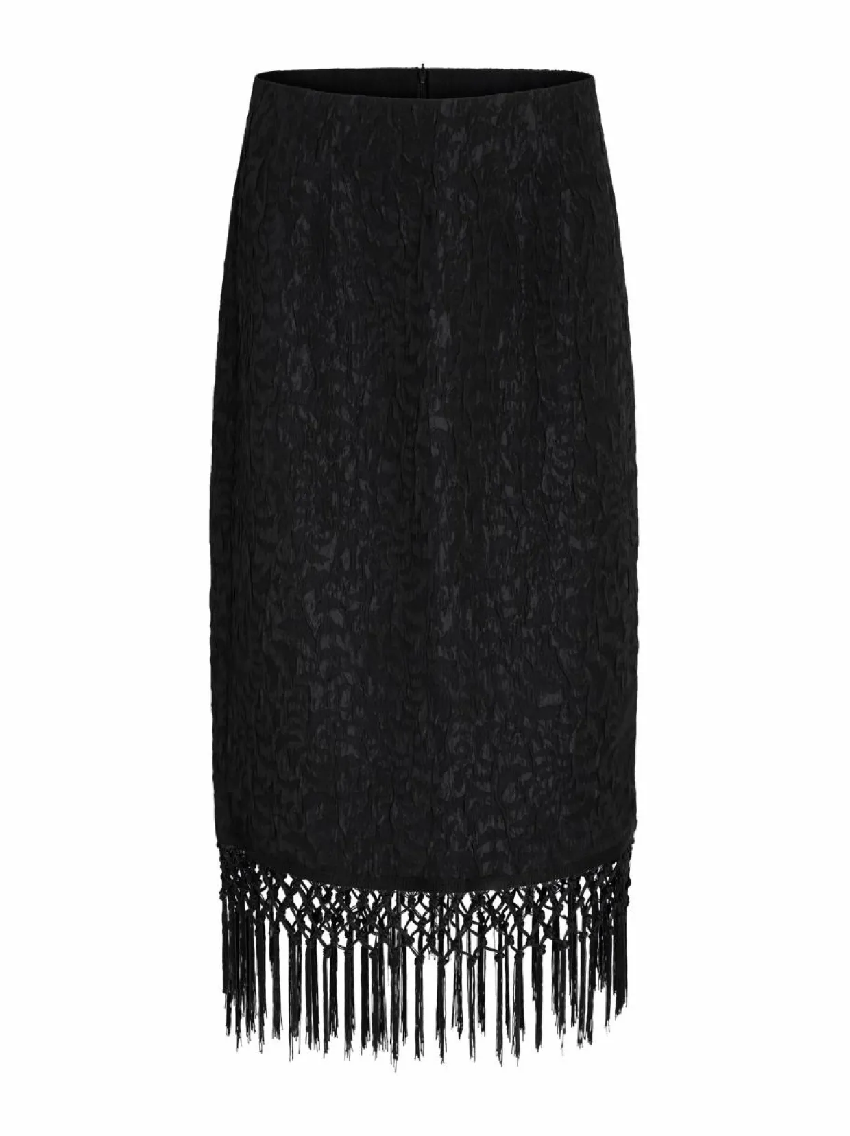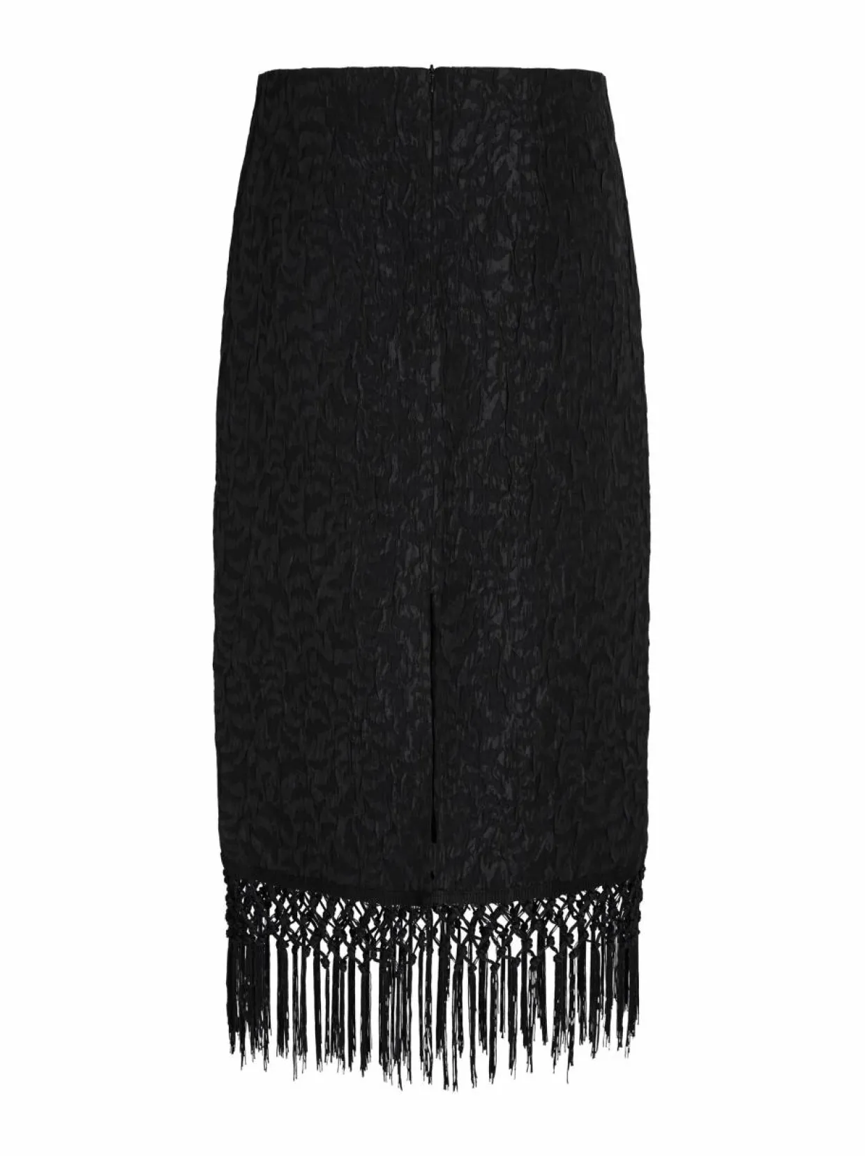 RUE de FEMME merkin Anita-hame on ajaton lisäys vaatekaappiisi. Polven alapuolelle ulottuvassa hameessa on kaunis, teksturoitu pinta ja hapsureuna. Vetoketju löytyy hameen takaosasta. Vaate sopii mainiosti niin arkiseen kuin juhlavampaan käyttöön.