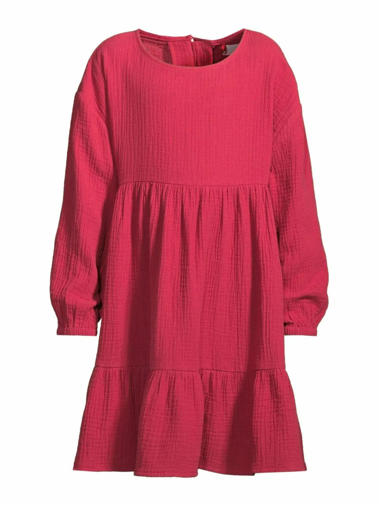 Bogin Anniina-mekko on valmistettu pehmeästä ja kevyestä musliinikankaasta. Se sopii ihanteellisesti kevät- ja kesäkäyttöön. Puuvillainen musliinimekko laskeutuu rennosti vartalolle ja on mukava päällä. Yksityiskohtana pyöreä pääntie, pitkät hihat ja kauniisti kerrostettu helma.
