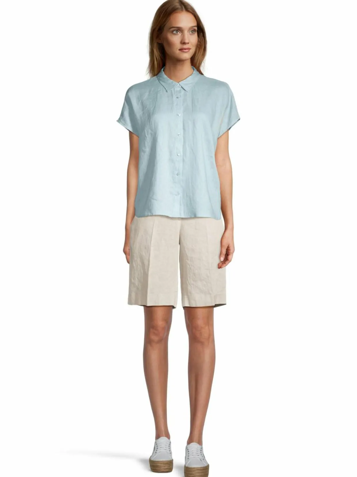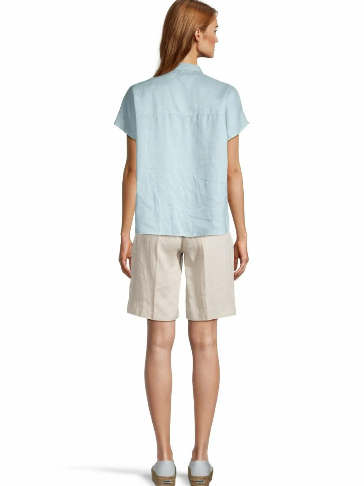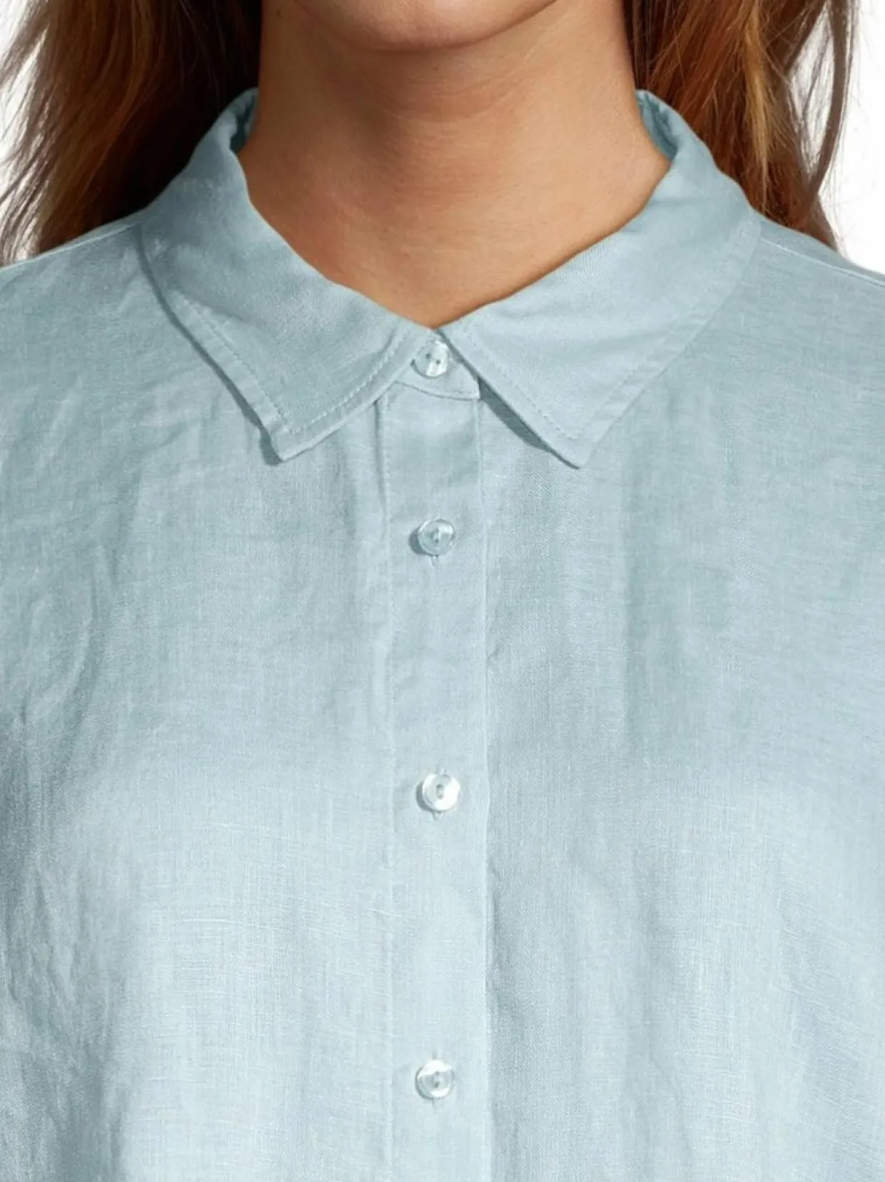 Tämä kaunis pellavainen paitapusero Essentials by Stockmannilta luo kevyen ja ilmavan ilmeen. Vaate on suunniteltu normaaliin istuvuuteen. Siinä on klassinen paitakaulus ja kokopitkä napitus. Helma on hieman kaareva. Paitaa tyylittävät holkkihihat, jotka laskeutuvat pehmeästi olkapäiltä ilman erillistä hihaommelta. Paita on valmistettu ihoystävällisestä ja hengittävästä pellavasta, joka tuntuu miellyttävän viileältä iholla.