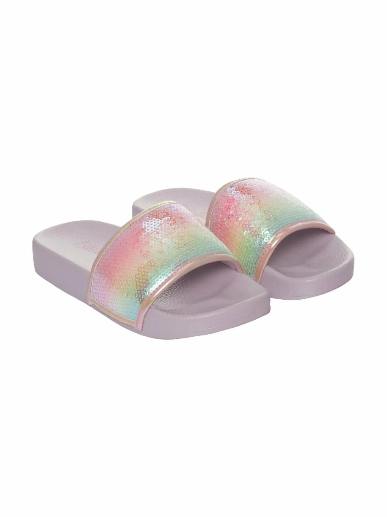 MateriaaliSynteettinen materiaali ValmistusmaaKiina Väri911 VIOLET AvainsanatBILLIEBLUSH, lasten sandaalit, paljettisandaalit, sateenkaari sandaalit, liukusandaalit