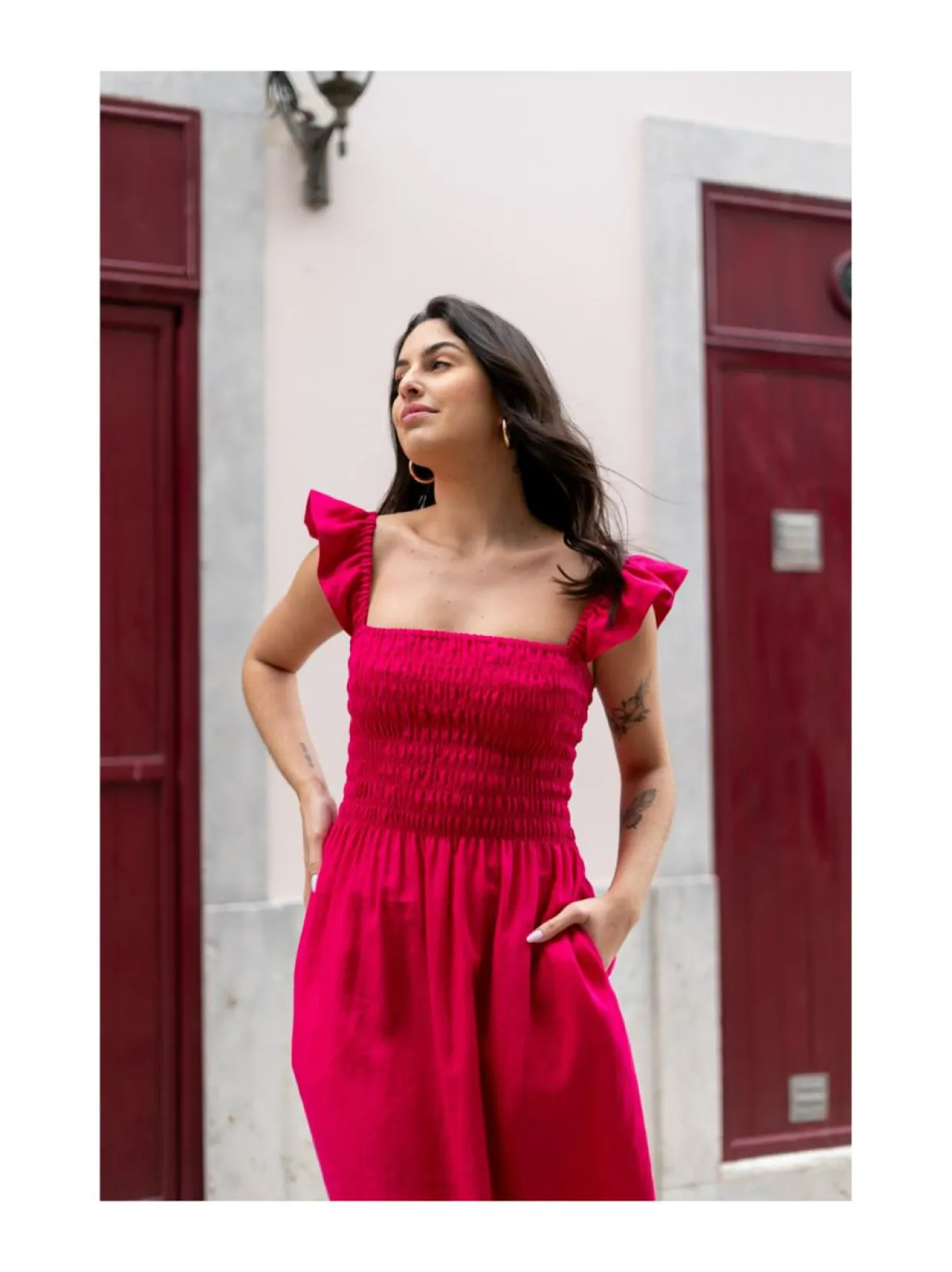 Kevään ihastuttava ja kaunis uutuusmekko on smokkirypytyksellä varustettu imarteleva Ariela Dress! Trendikkäässä pellavamekossa on lyhyet, poimutetut hihat sekä vartalonmyötäinen smokkirypytys, joka luo todella kauniin ja naisellisen istuvuuden. Mekon käyttömukavuutta täydentää sivutaskut ja se laskeutuu hieman polven alapuolelle.