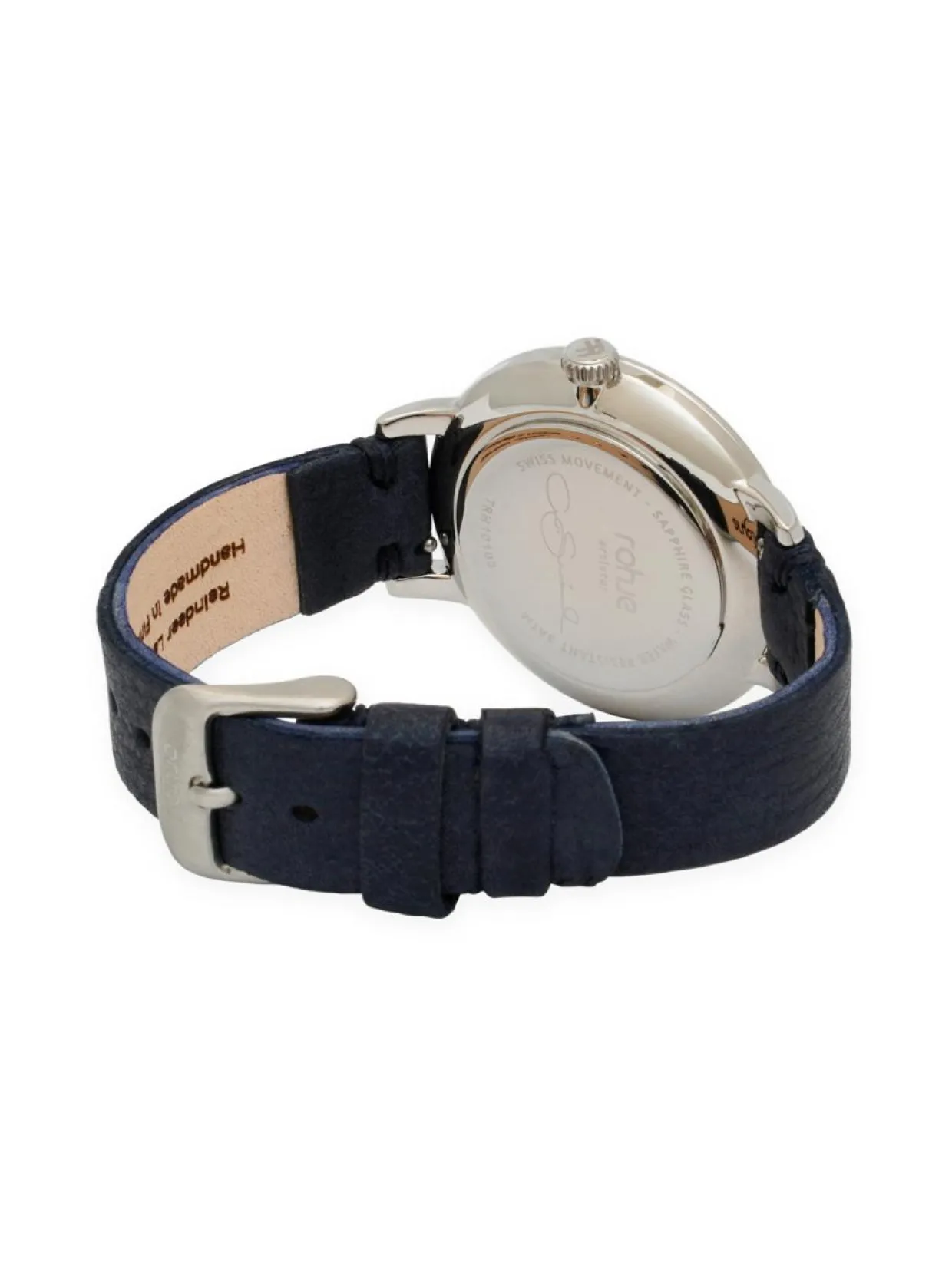 Käsintehty tummansininen poronnahkaranneke on kasviparkittua poronnahkaa. Kasviparkkaus on allergisoimaton ja luontoystävällinen tapa käsitellä nahka verrattuna yleisempään teolliseen kromiparkkaukseen.Tuotenumero1205820 MateriaaliTeräs, safiirilasi, poronnahka Paristo sisältyyKyllä Takuu24 kk Väri17 KokoNormaali AvainsanatKello, rannekello, naisten kello