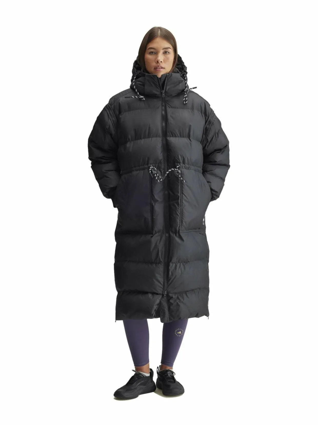 adidas by Stella McCartneyn pitkä ja lämmin toppatakki sopii täydellisesti kylmiin päiviin. Takki on valmistettu kierrätetystä polyesteristä. Takissa on säädettävä huppu, kätevä kaksisuuntainen vetoketju edessä ja kaksi sivutaskua. Vyötärölinjassa on säätömahdollisuus. Pitkät vetoketjulliset halkiot helman sivuilla. Suunniteltu rentoon istuvuuteen.