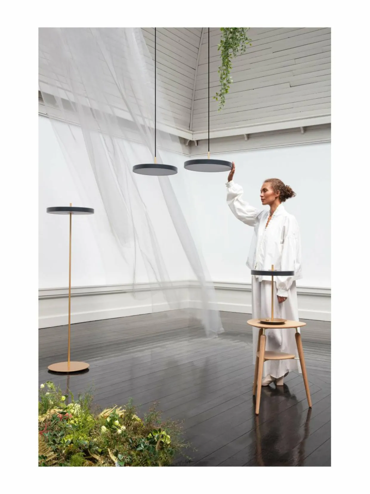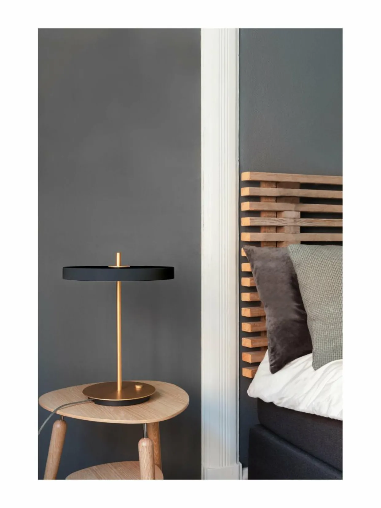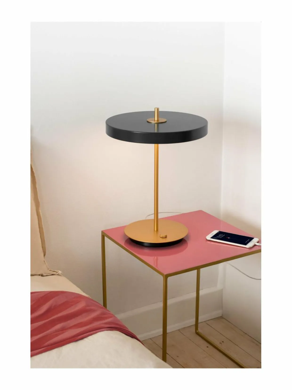 Tanskalaisen Umagen valmistama Asteria on kevyt ja tehokas LED-modulilla toimiva pöytävalaisin. Valaisimen alaosassa on diffuusori, jonka ansiosta valo lankeaa huoneeseen pehmeän tasaisena. Valaisimen runkoon on lisätty USB-latausportti, jolloin voit ladata puhelintasi myös silloin kun valo ei ole päällä.