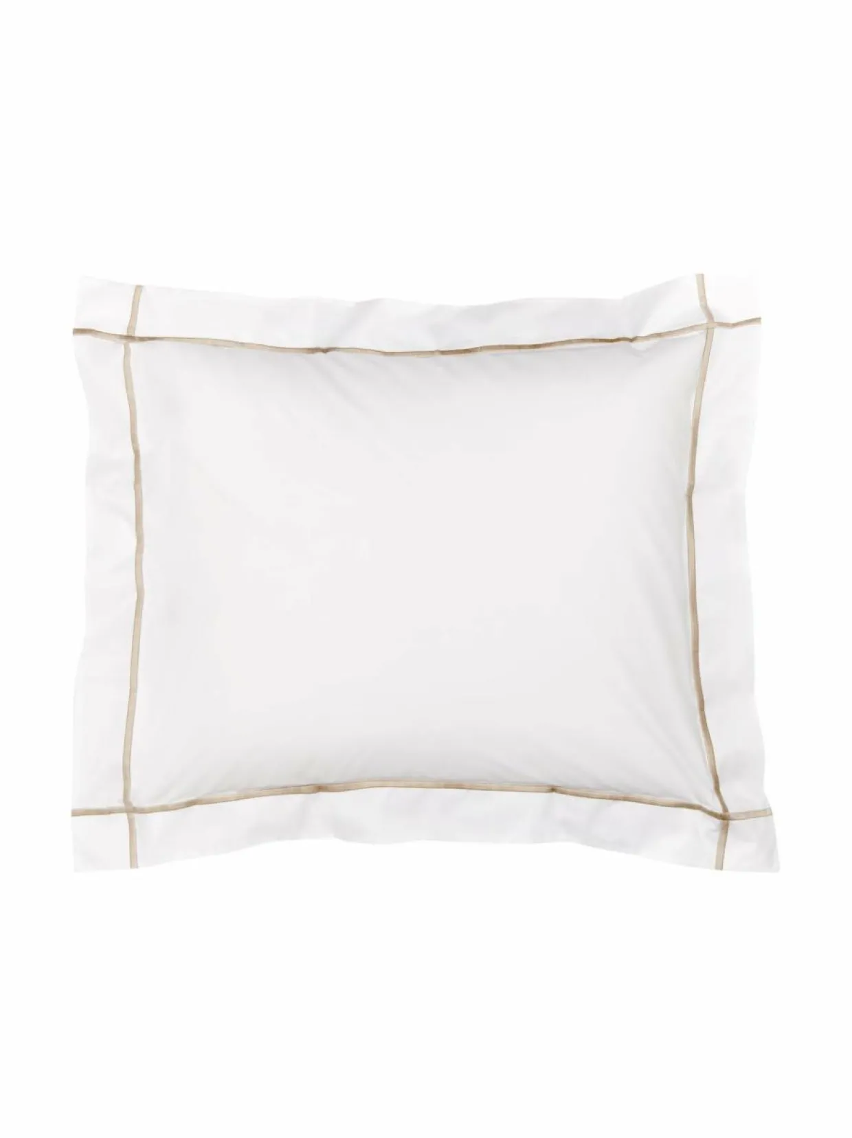 Yves Delormen hienostuneessa tyynyliinassa on brodeeraus ja reunakaitale. Materiaali on laadukasta, 100 % egyptiläistä puuvillaa, jonka lankaluku on 500.