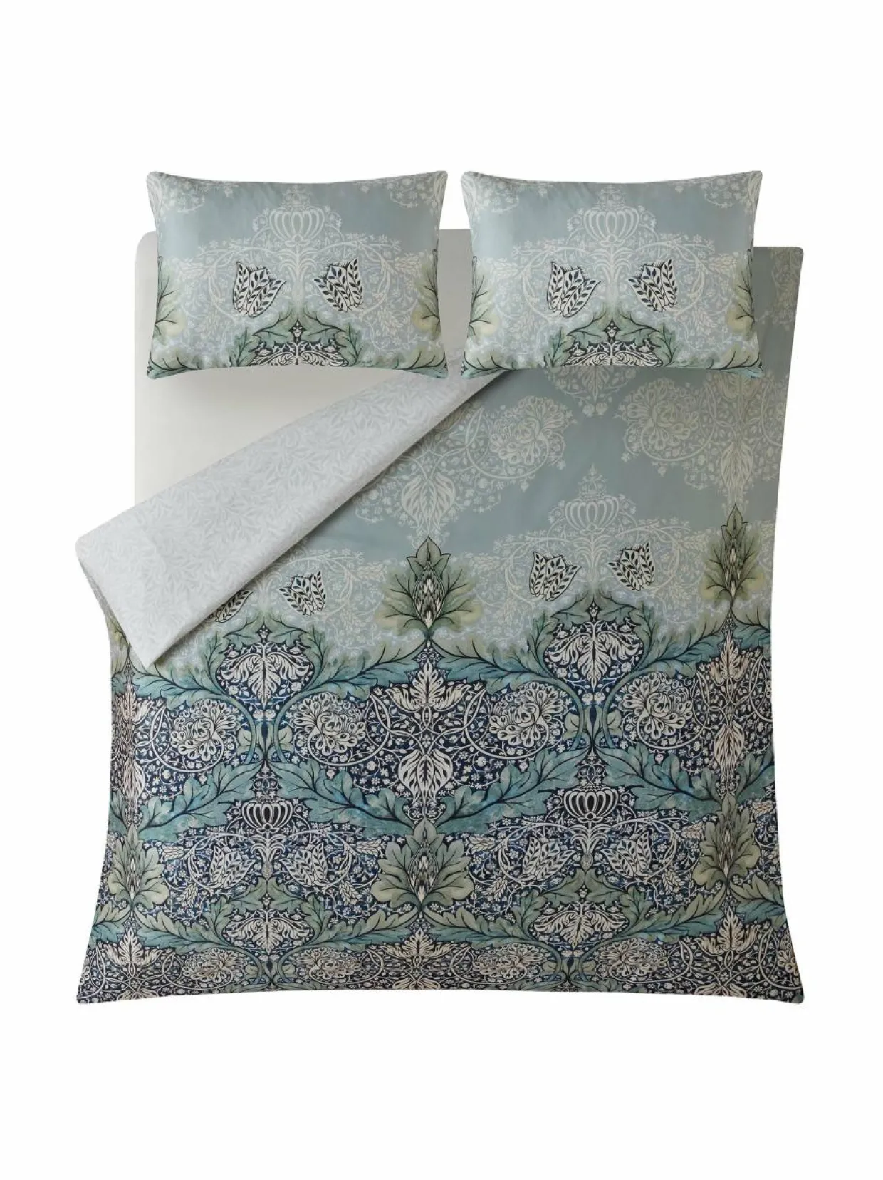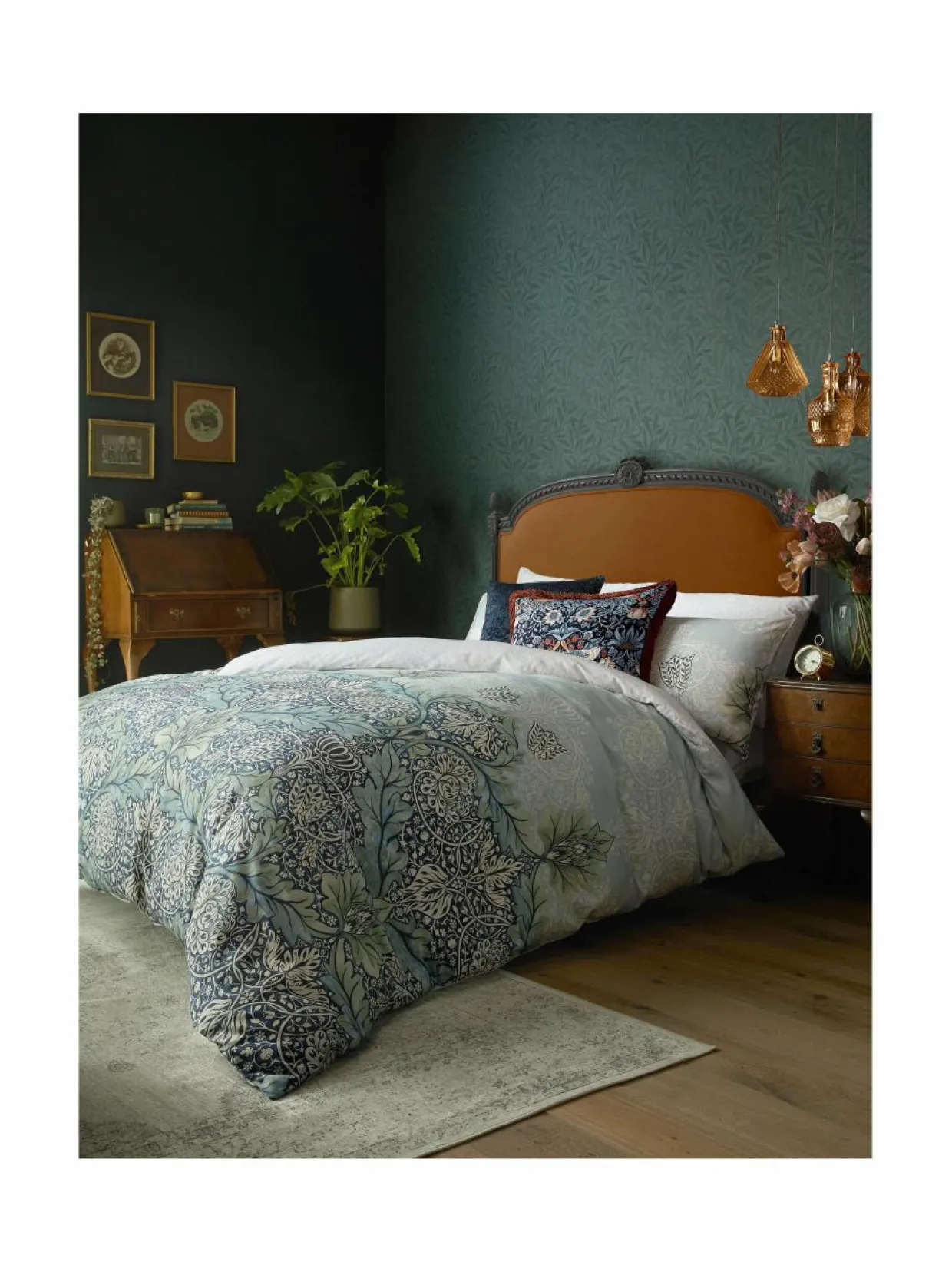 Ylellisen tuntuisen satiinipussilakanasetin printti perustuu William Morrisin alkuperäiseen maalaukseen. Digitaalisesti painettu pehmeälle puuvillasatiinipohjalle (lankaluku 220). Kääntöpuolella Willow Bough -printti pehmeissä sävyissä.