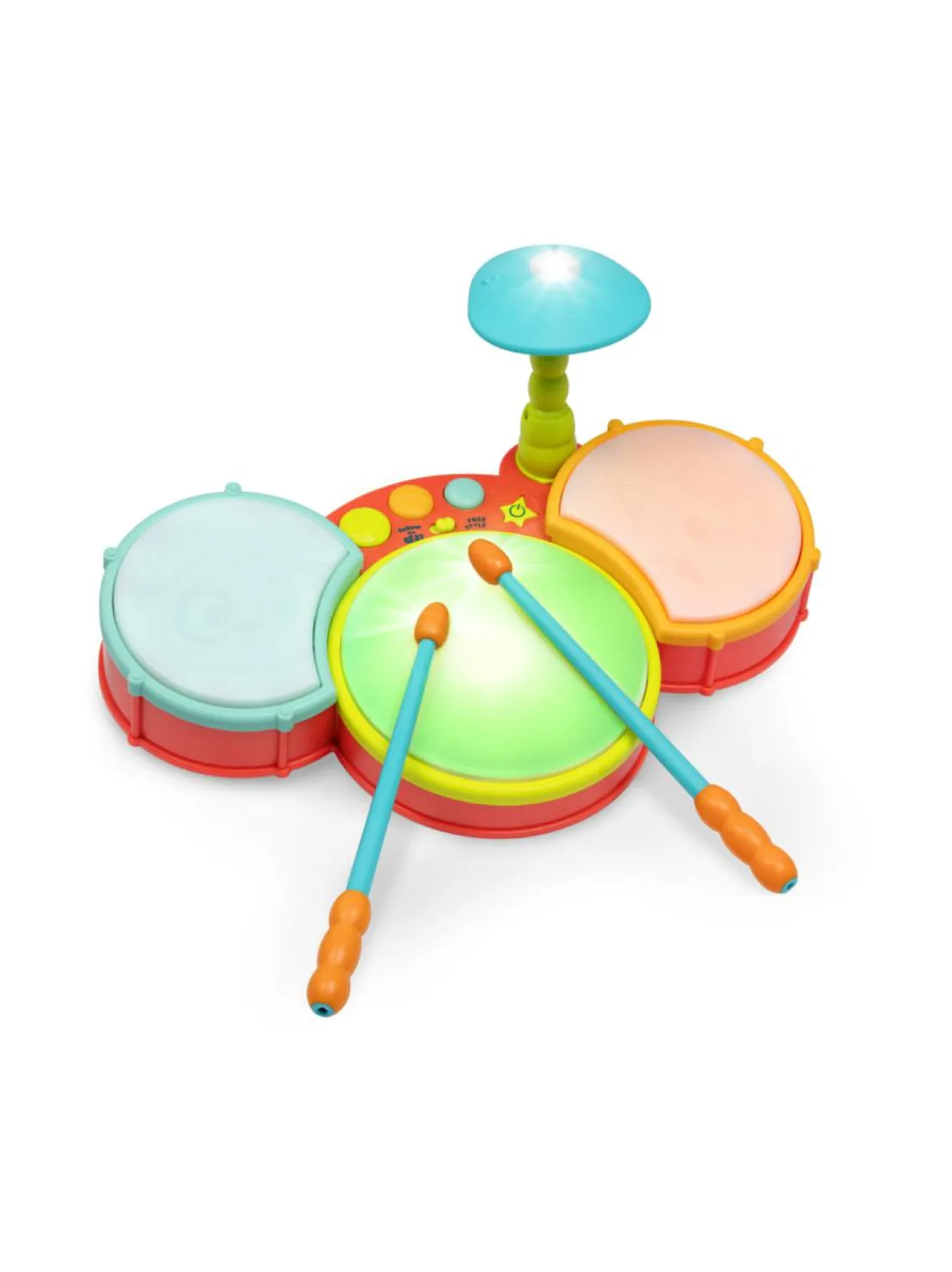 Tutustuta lapsesi musiikin maailmaan Little Beats -rumpusetin avulla! Lasten värikäs rumpusetti innostaa lasta rummuttamaan rummun valojen tahdissa. Rumpuihin syttyy valo jokaisella lyönnillä, ja se pitää hauskoja eläinten ja rummun ääniä, jotka pitävät yllä lapsesi mielenkiintoa. Lapsesi voi lyödä rumpuja niihin syttyvien valojen tahdissa tai soittaa oman rytminsä mukaan. Rumpusetti on myös opettavainen, ja se auttaa lapsia kehittämään musikaalisia taitoja hauskanpidon ohessa! Little Beats -rumpusettiä suositellaan 2-vuotiaille ja sitä vanhemmille lapsille, joten se on täydellinen lahjaidea kaikille nuorille muusikoille.