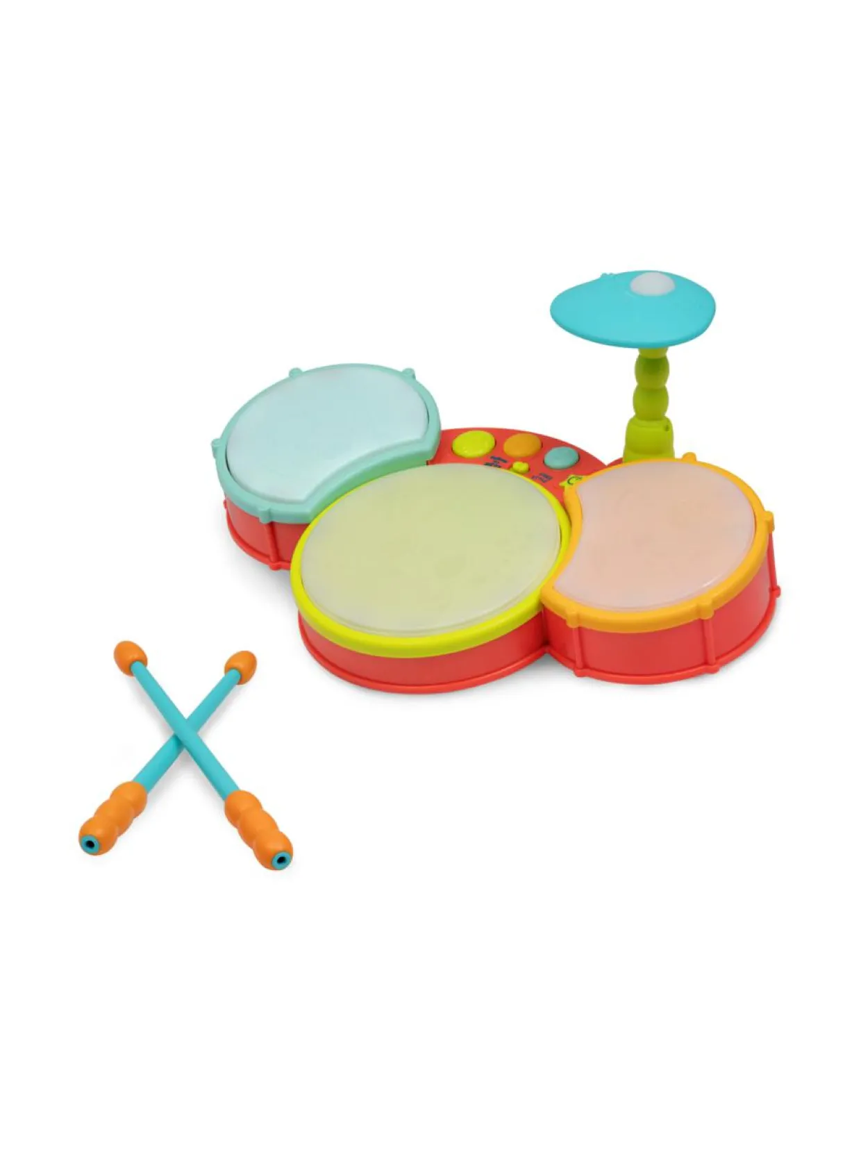 VAROITUS! Jotkut ihmiset voivat saada kirkkaista välkkyvistä valoista epilepsiakohtauksen.Tuotenumero1542726 Ikäsuositus2+ Paristo sisältyyKyllä Paristojen määrä3 ParistotyyppiAA/LR6 Avainsanatrumpusetti, lasten rumpusetti, b. toys rumpusetti, musiikkilelu, lasten soitinsetti, rumpu lapsille, rytmilelu
