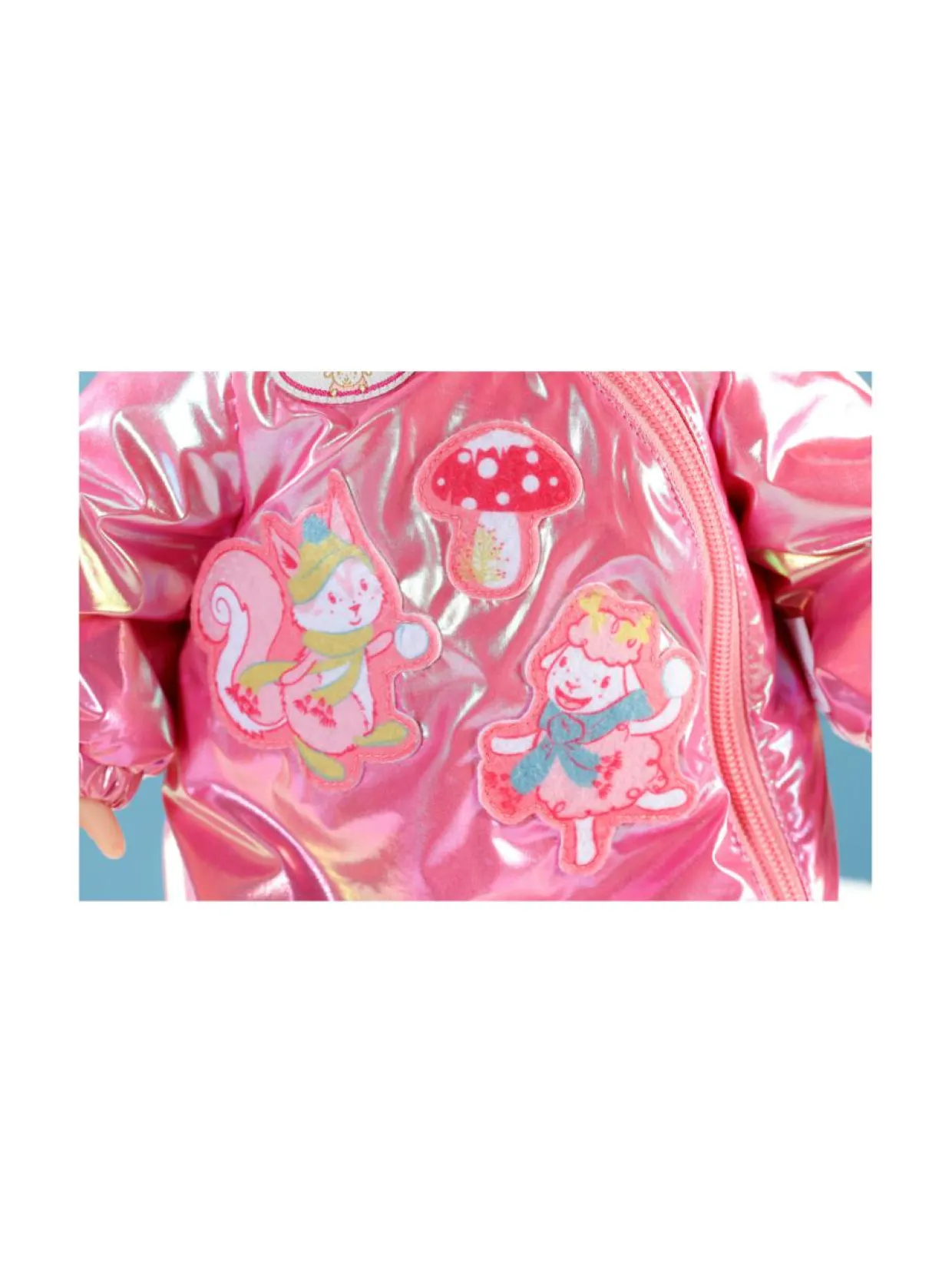Tutustu uuteen Baby Annabellin toppapukuun, joka on suunniteltu ihania talvisia hetkiä varten. Ihanan hohtavasta ja kiiltävästä, vaaleanpunaisesta kankaasta valmistettuun toppapukuun on ommeltu värikkäitä ja supersöpöjä talviaiheisia kuvia. Toppapuku on niin lämmin ja mukava nukellesi!