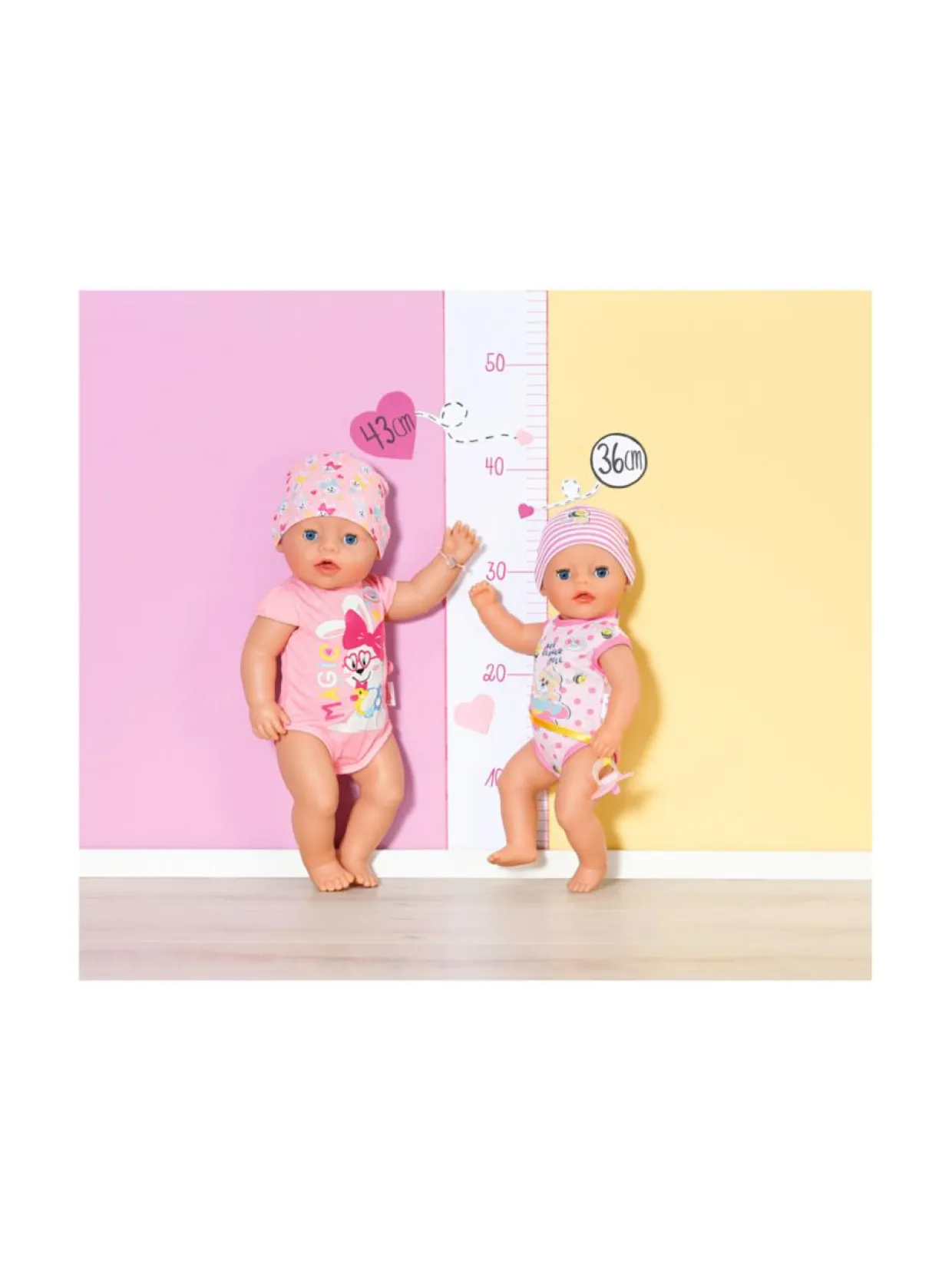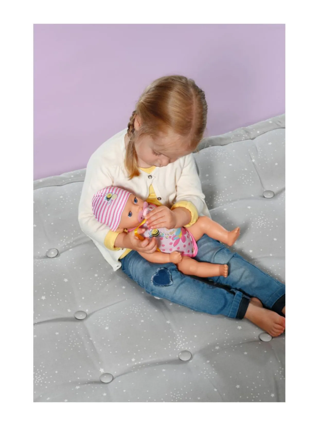 Upea Baby Born -nukke, joka voi olla ensimmäisesi. Se on pienempi ja kevyempi kuin perinteinen Baby Born -nukke, joten se sopii niinkin pienille kuin 1-vuotiaille lapsille. Nukessa on 7 elävän tuntuista toimintoa, mutta se ei tarvitse paristoja! Nukke osaa avata ja sulkea silmänsä taikatutin avulla, juoda vettä ja kastella vaippansa. Lisäksi nuken voi ottaa ammeeseen mukaan kylpyleluksi.