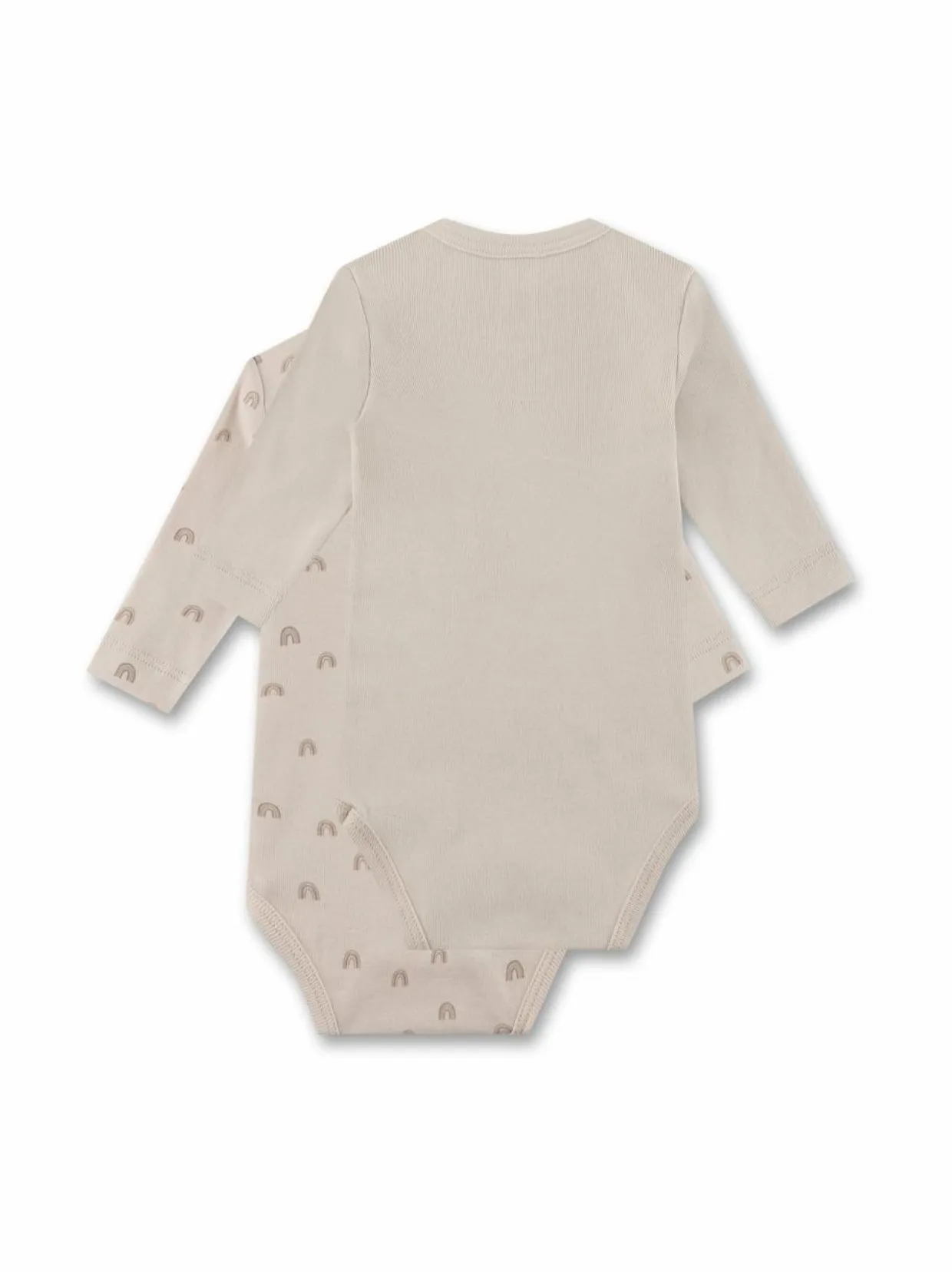 Sanetta Baby Unisex -setti sisältää kaksi pitkähihasta bodya, joista toinen on yksivärinen ja toinen suloisella sateenkaarikuosilla. Molemmat bodyt on valmistettu pehmeästä ja hengittävästä luomupuuvillasta, joka tuntuu miellyttävältä lapsen herkkää ihoa vasten. Kietaisupääntie helpottaa pukemista, ja haaraosan nepparit tekevät vaipanvaihdosta vaivatonta.