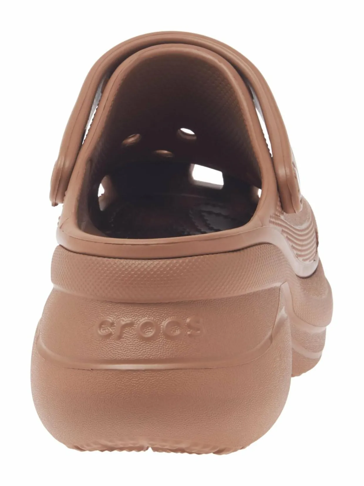Crocsin Bae Clog -kengissä on erittäin muotoiltu ulkopohja ja tuttu, ihana päällinen – eikä siinä kaikki. Uudessa muokattavassa kantaremmissä voi käyttää Jibbitz™-koruja, joten voit tehdä kengistä vielä enemmän omannäköisesi. Kun haluat vähän enemmän, valitse Bae-kengät. Nämä kengät ovat uudistettu versio Classic Clog -kengistä, joihin on lisätty korkeutta, asennetta ja tyyliä. Kenkien korkeus on 60 mm lattiasta kantapäähän laskettuna. Iconic Crocs Comfort -materiaaliteknologia tarjoaa keveyttä, joustavuutta ja 360 asteen mukavuutta.