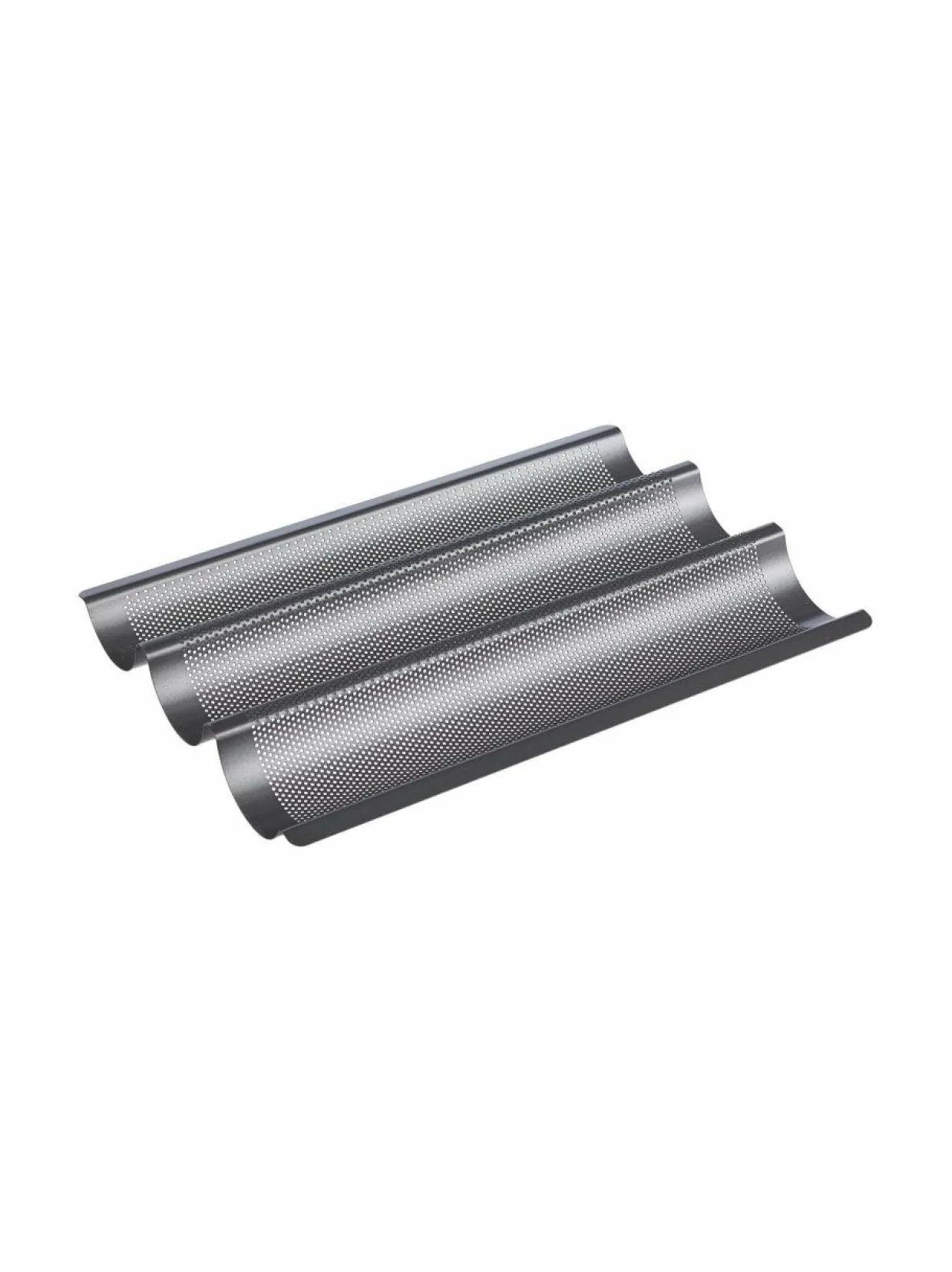 Kätevällä Birkmann Baguette Tray -patonkipellillä paistat kolme herkullista patonkia samanaikaisesti. Materiaali on metallia ja siinä on tarttumaton pinnoite.