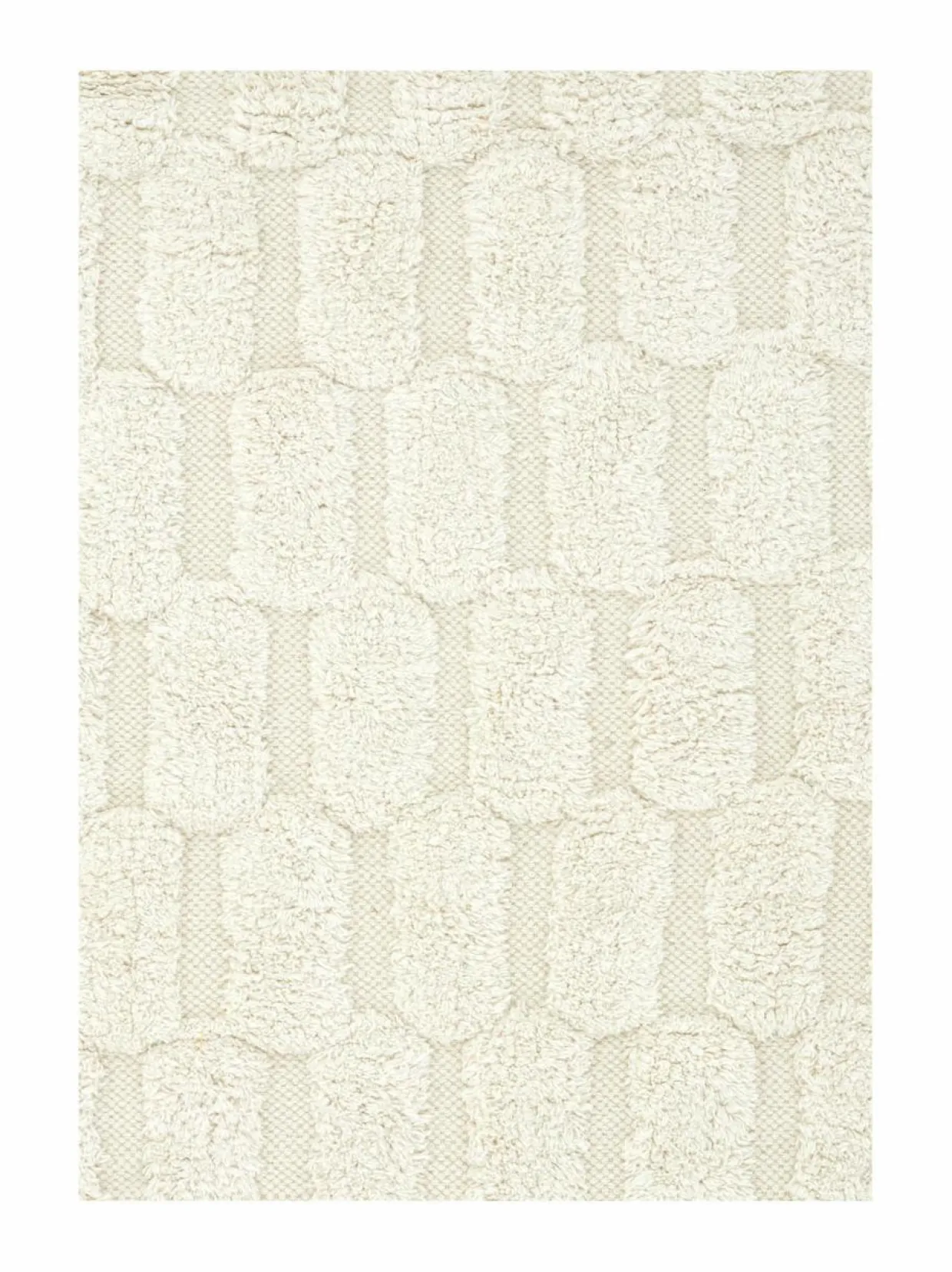 Materiaali97 % puuvilla, 3 % muu kuitu Hoito-ohjeetKonepesu 30°C ValmistusmaaIntia VäriSOFT WHITE Avainsanatmatto, käsin kudottu, puuvilla, sisustus, tuftattu matto