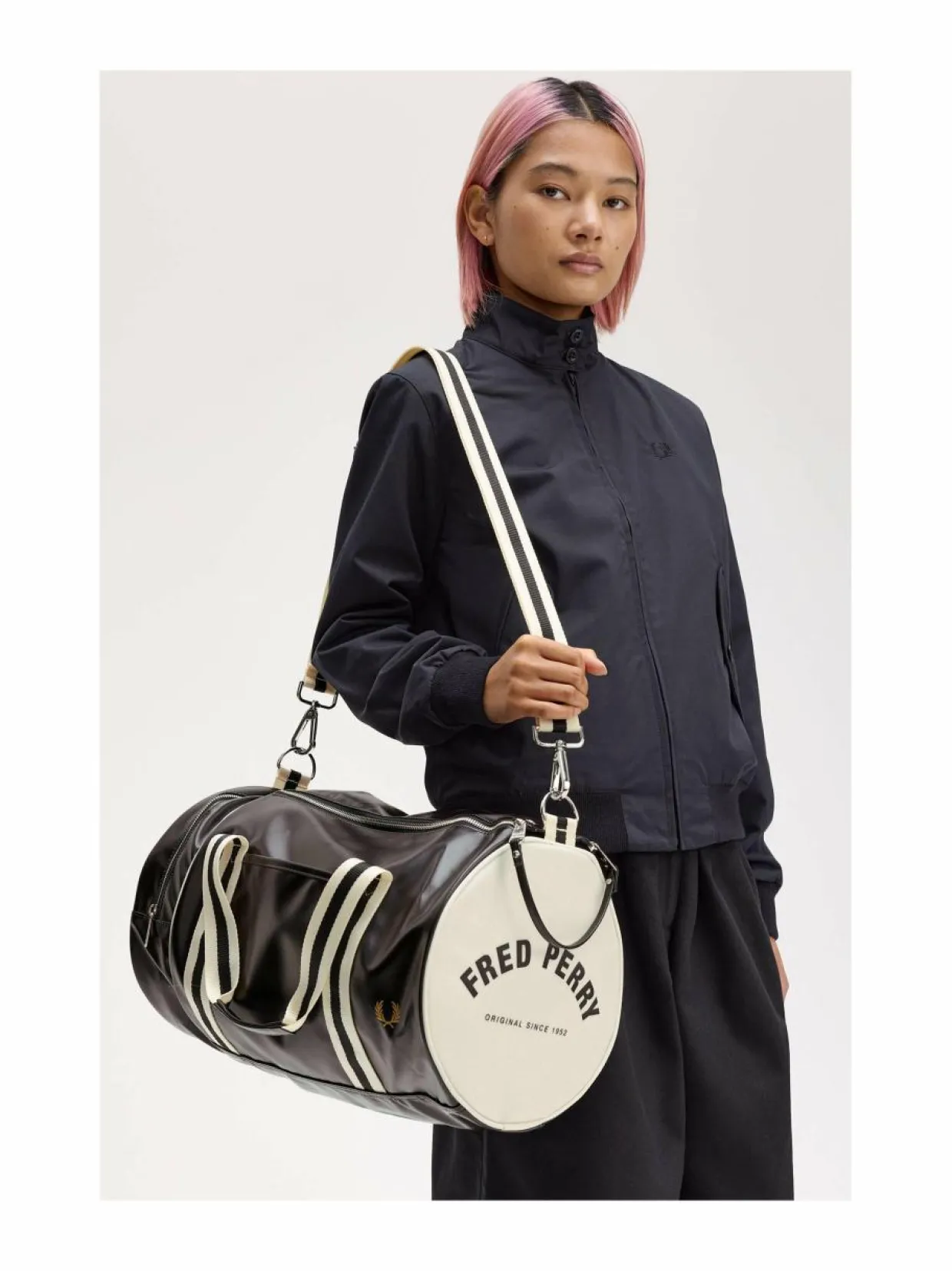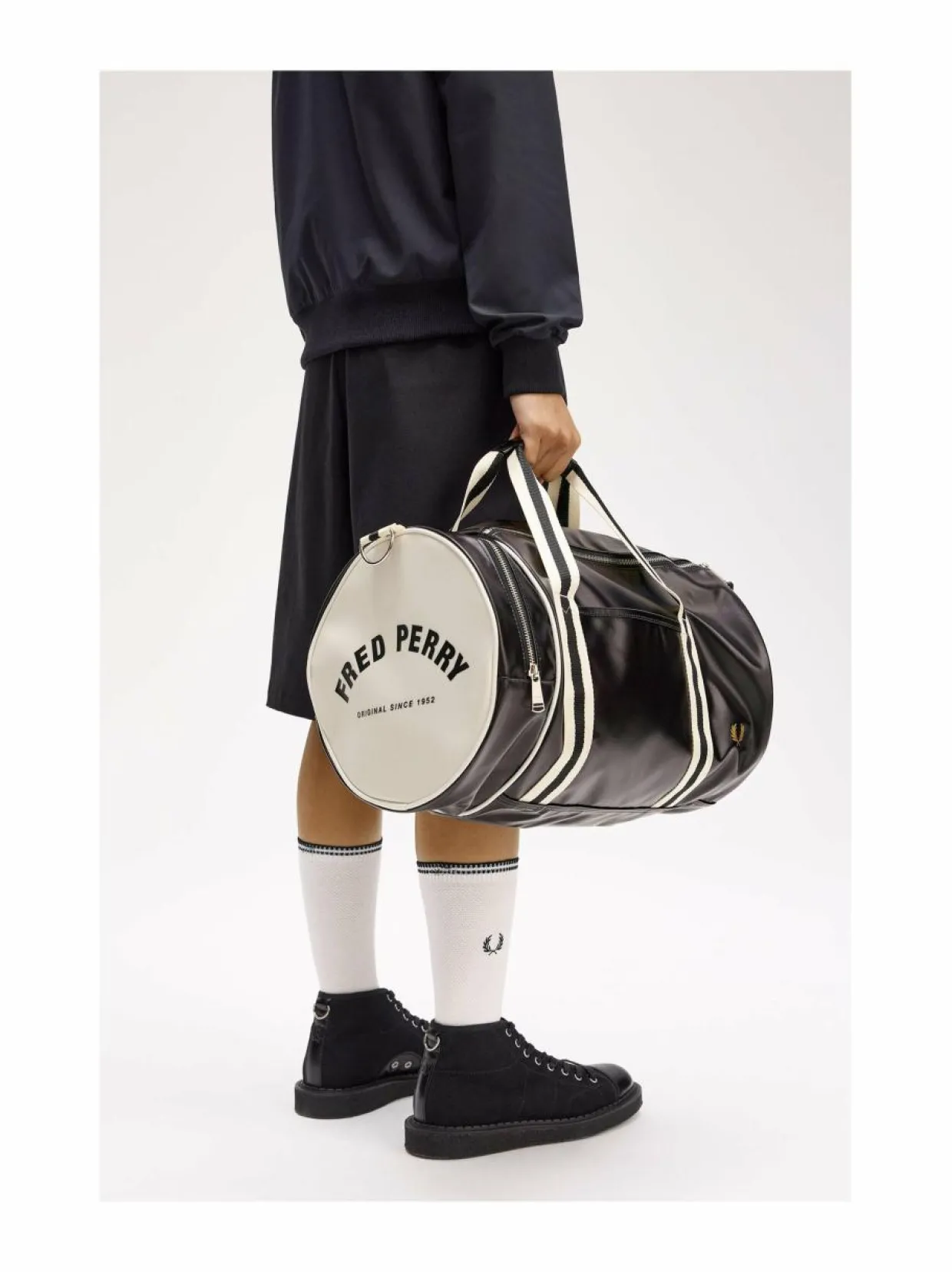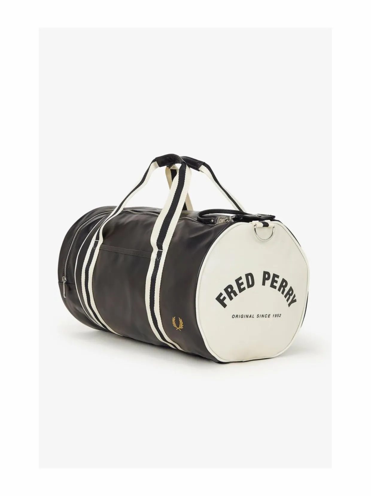 Fred Perryn Barrel-laukku on ajaton sekä tyylikäs laukku, joka sopii erinomaisesti matkoille ja arkikäyttöön. Laukussa on kaksi kantokahvaa ja irrotettava olkahihna, joten sitä voi kantaa kädessä, olalla tai selässä. Laukussa on yksi päälokero, jossa on vetoketju, ja sisäpuolella on pieni vetoketjullinen tasku. Laukussa on myös kaksi ulkoista taskua, joista toinen on vetoketjullinen ja toinen avoin. Laukun materiaali on polyesteriä, joten se hylkii myös vettä. Laukussa on Fred Perryn -logomerkki ja tämä laukku sopii erinomaisesti matkoille, urheiluun ja arkikäyttöön.