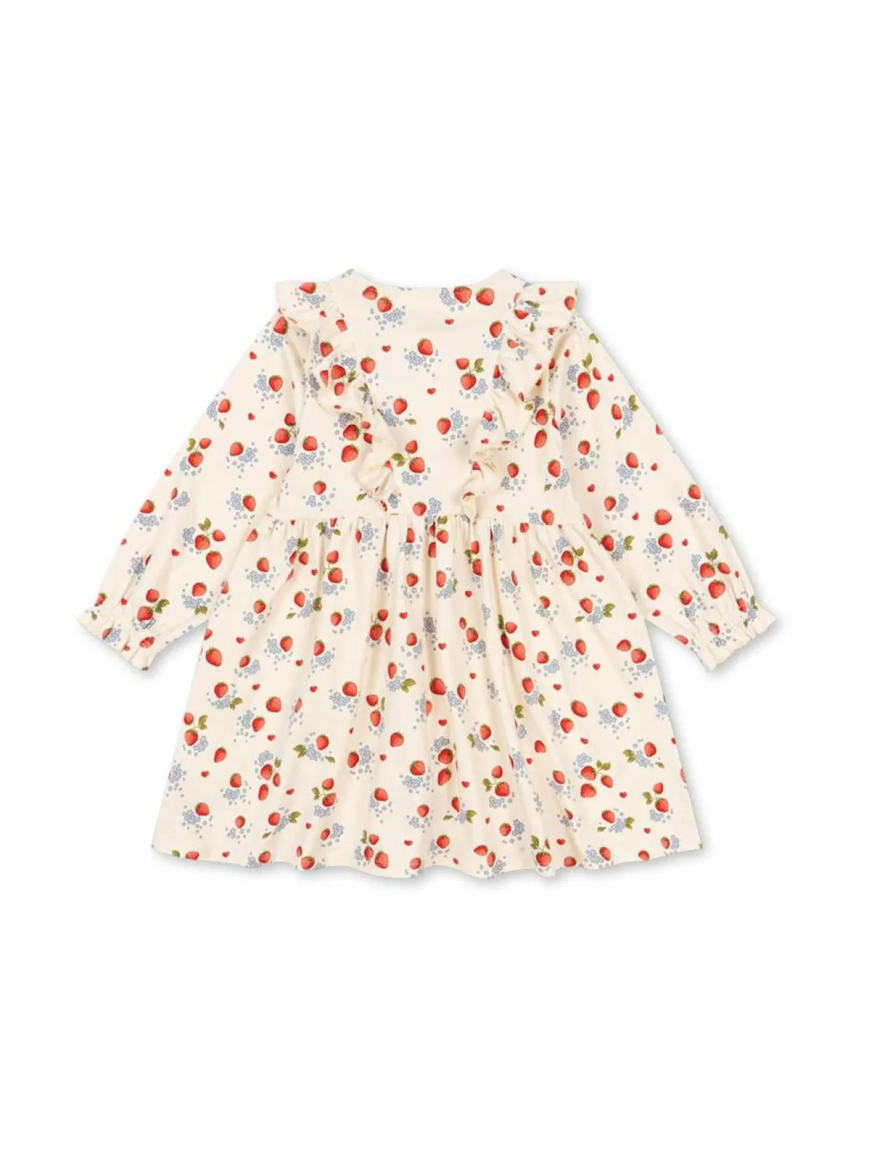Ihastuttava Basic Frill -mekko on valmistettu pehmeästä ja hengittävästä luomupuuvillasta. Mekko on varustettu kauniilla pitsillä reunustetulla rypytyksellä edessä ja selässä. Mekossa on pitkät hihat ja se on suunniteltu a-linjaiseksi. Mekko sopii täydellisesti arkeen ja juhlaan. Mekko on valmistettu GOTS-sertifioidusta luomupuuvillasta, mikä takaa sen ympäristöystävällisyyden ja turvallisuuden. Luomupuuvilla on pehmeää ja miellyttävää iholle.