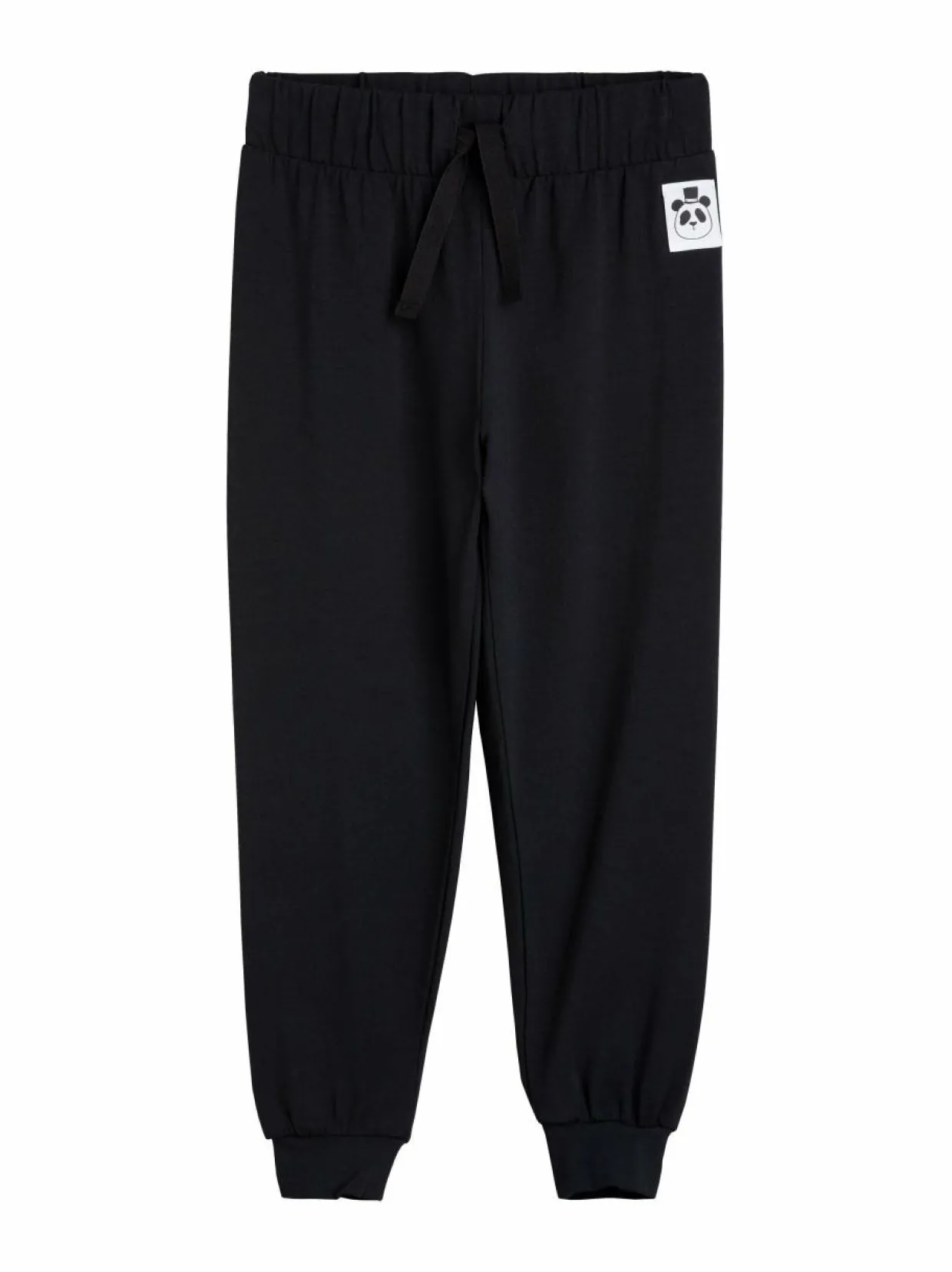 Mini Rodini Basic -housut on valmistettu TENCEL™ LYOCELL-kuiduista. Nämä kuidut ovat korkealaatuisia selluloosakuituja, jotka ovat peräisin kestävästi huolletuista metsistä saadusta puumassasta. Valmistuksessa on huomioitu ympäristövaikutusten minimointi. Housuissa kiristysnyöri, jolla housut voi säätää sopiviksi. Edessä Mini Rodinin Panda -merkki.