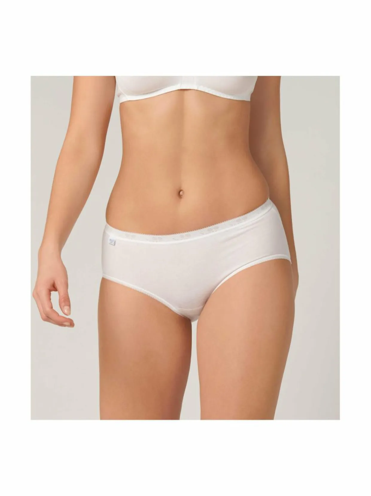 Sloggi Basic Midi -alushousut ovat pehmeää puuvillatrikoota. Pakkauksessa on kolmet alushousut.
