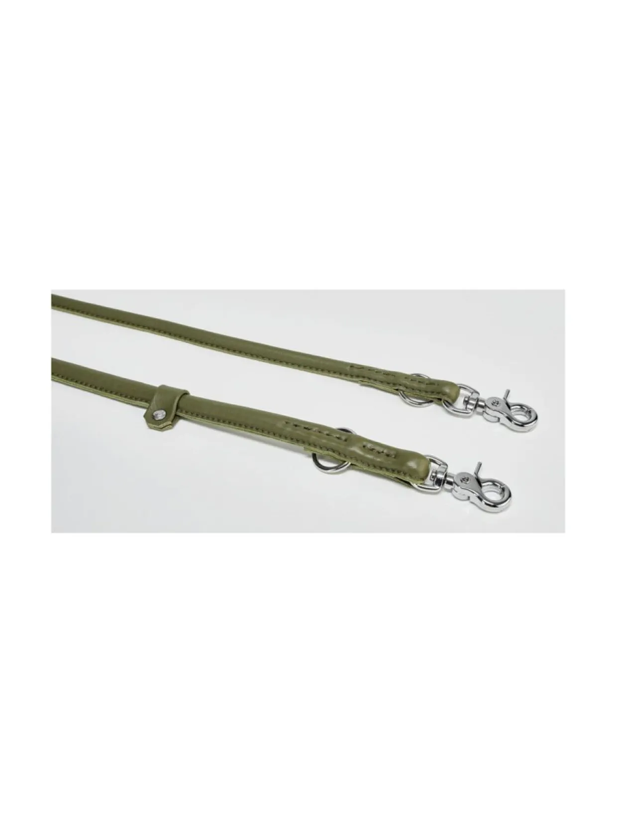 Pyöreä, ommeltu, 3-suuntaisesti säädettävä tummanvihreä Amici talutushihna tarjoaa erityisen pehmeän tunteen taluttaessa. Vahvan ompelun lisäksi hihnan ydin on vahvistettu nailonilla lisäämään kestävyyttä. Kaulaa vasten olevan alapuolen samettisen pehmeä nupukkinahka sopii hyvin myös herkille koirille.