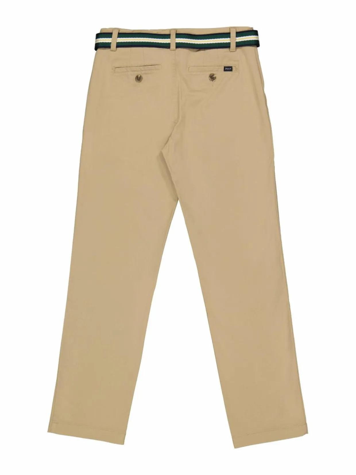 Lasten siistit ja monikäyttöiset Bedford-housut raidallisella vyöllä. Housut ovat valmistettu puuvillan ja elastaanin sekoituksesta, joten housut joustavat miellyttävästi käytössä.