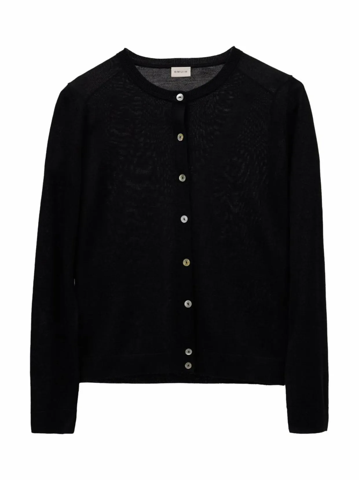 Materiaali75 % villa, 25 % silkki Väri990 BLACK Avainsanatneule, neuletakki, villaneule, merinovillaneule, BMuir, neulepusero, Balmuir