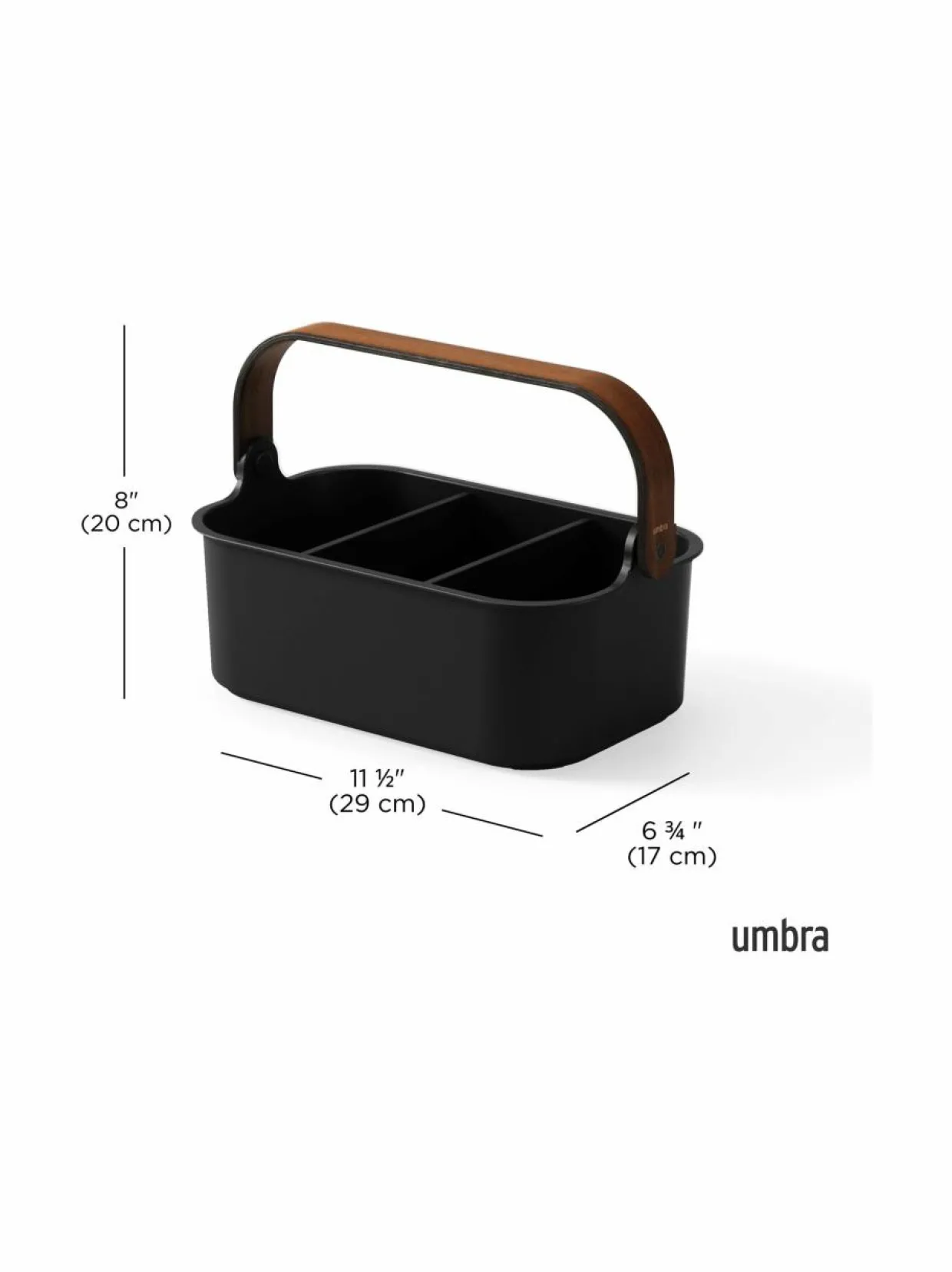 Umbran Bellwood-kori on käytännöllinen ja moderni säilytyslaatikko, jossa on kolme osastoa. Tilanjakajat ovat irrotettavia, joten voit helposti mukauttaa sen eri kokoisille tavaroille. Laatikon materiaalina on käytetty myös kierrätysmuovia. Puinen kahva lisää käyttömukavuutta. Bellwood-kori sopii erinomaisesti esimerkiksi toimistotarvikkeiden, kosmetiikan tai käsityötarvikkeiden säilytykseen.