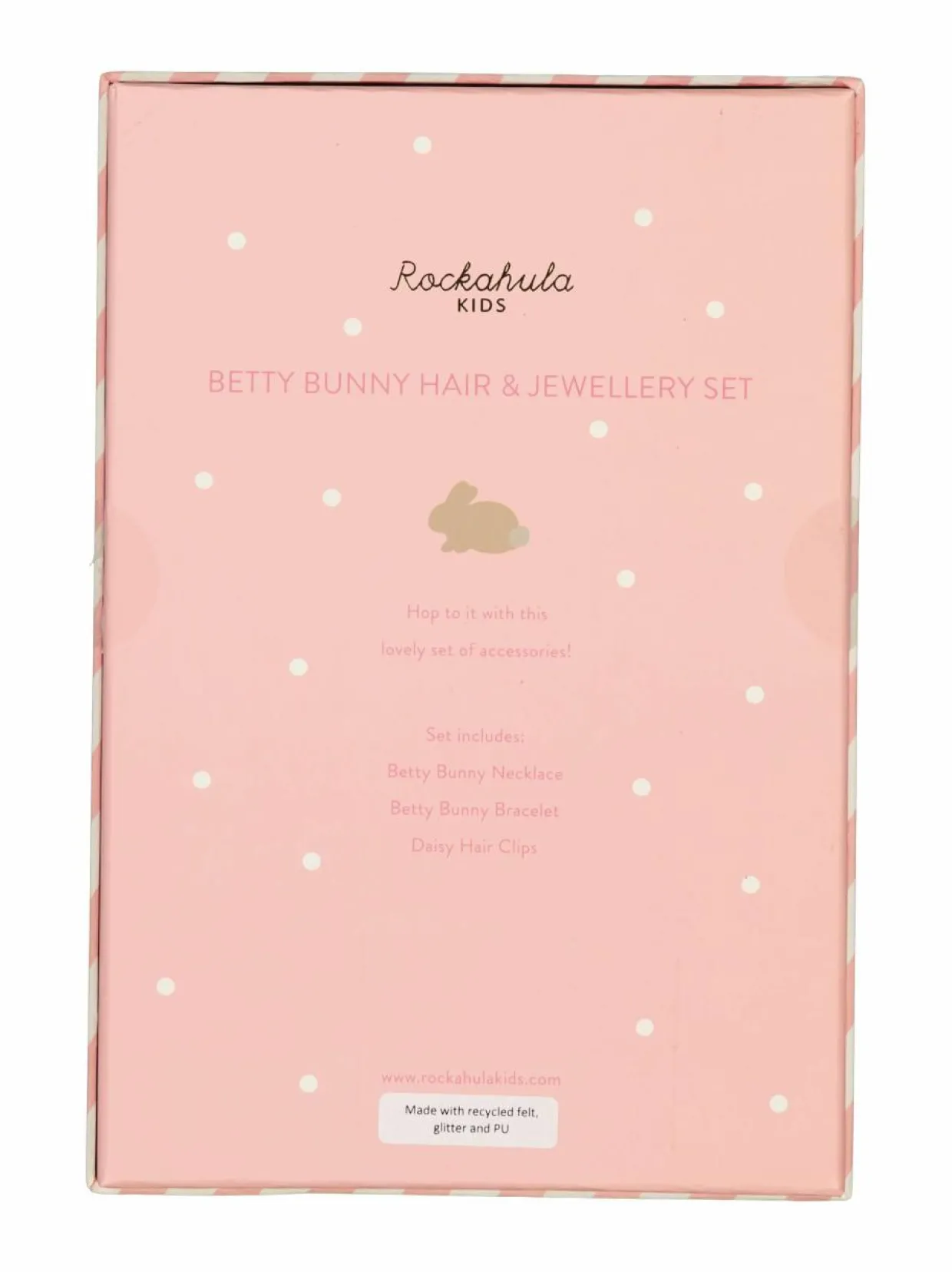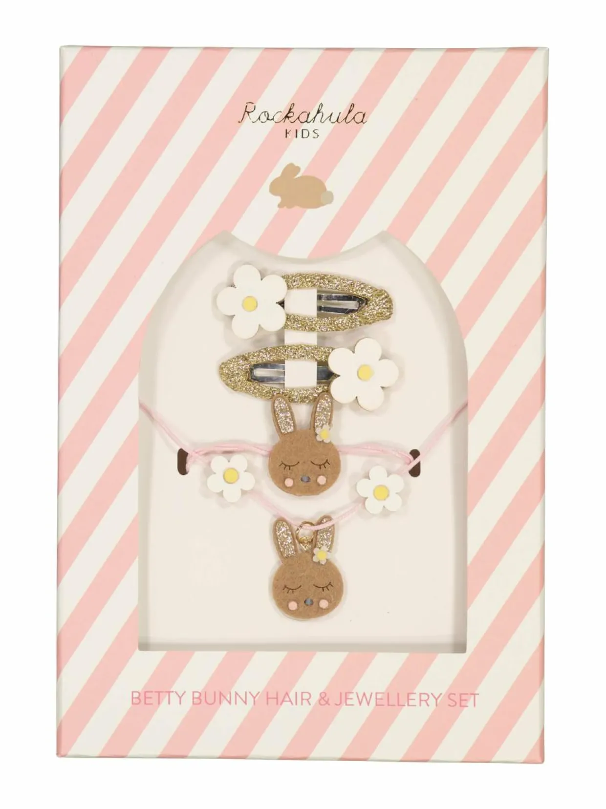 Tämä söpö asustesetti sisältää kauniin Betty Bunny -kaulakorun ja -rannekorun sekä kaksi kimaltavaa Daisy-hiuspinniä. Se on täydellinen lahja lapselle, joka rakastaa söpöjä asusteita. Setissä on kaksi kimaltavaa Daisy-hiuspinniä, jotka sopivat täydellisesti hiuksiin. Betty Bunny -korut viimeistelevät asun kuin asun. Setti on pakattu kauniiseen lahjapakkaukseen, joten se on täydellinen lahjaidea. Setin mitat ovat 22 cm x 15 cm.