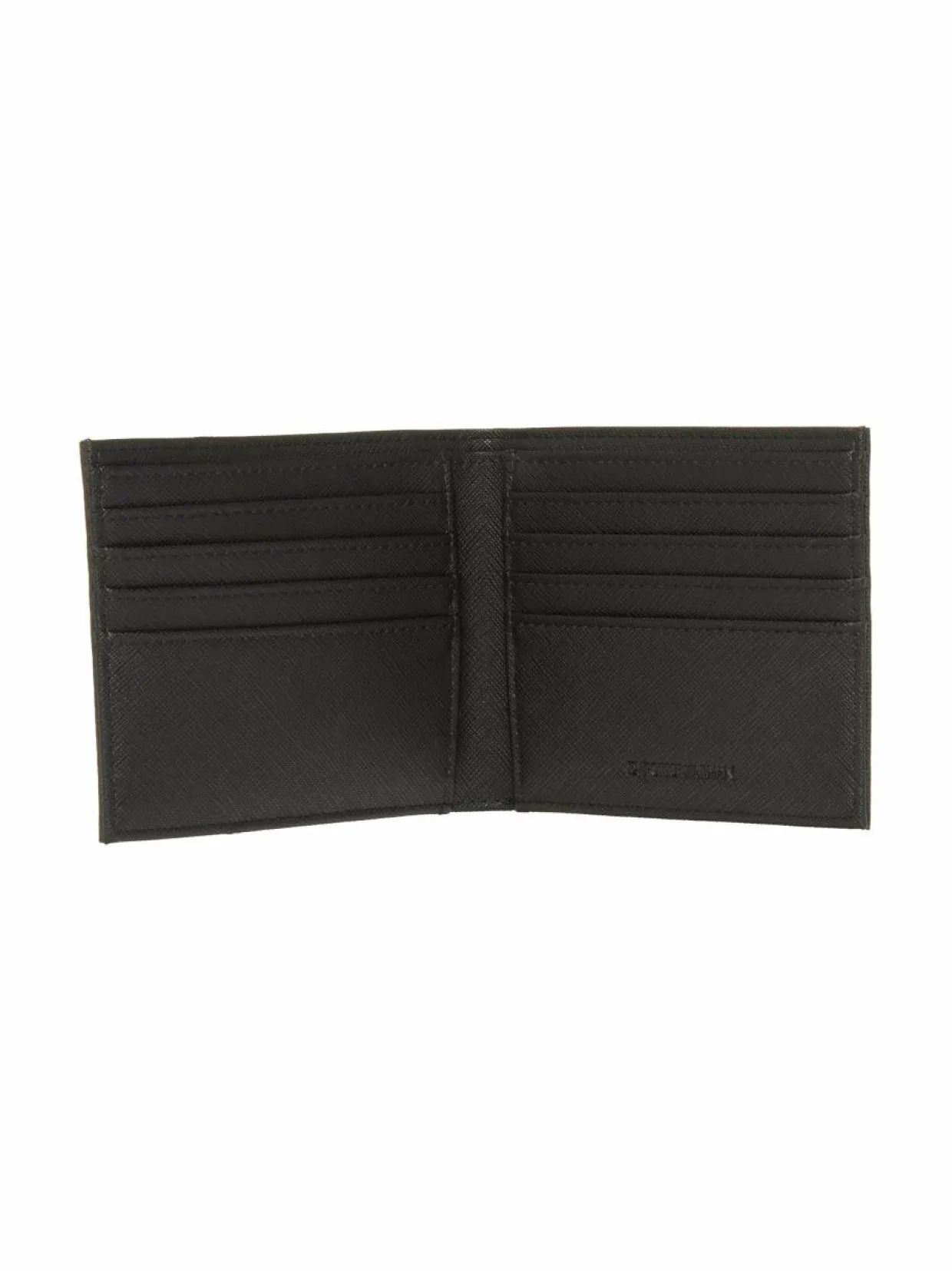 Taitettava tekonahkainen lompakko Emporio Armanilta. Yksityiskohtana logomerkki. Lompakosta löydät keskeisen osion käteiselle ja kuiteille sekä yhteensä kahdeksan korttipaikkaa.