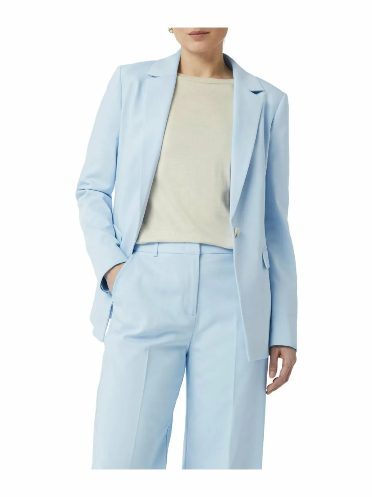 Bleiseri on mahdollista yhdistää esim. Comman yhteensopiviin Marlene- tai Cigarette-housuihin.Materiaali55 % polyesteri, 45 % viskoosi, 3 % elastaani PesuohjeetKemiallinen pesu ValmistusmaaKiina Väri5084 BLUE CANAL Avainsanattyköistuva bleiseri, takki, naisten takki, jakku, Comma