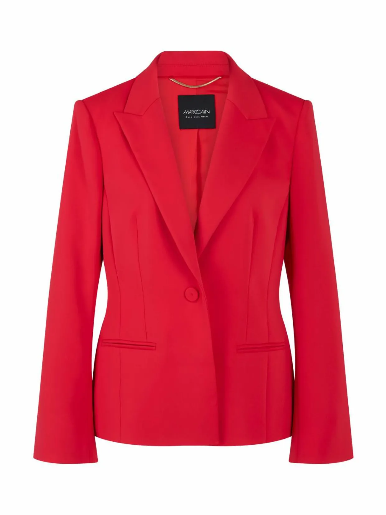 Materiaali97 % polyesteri, 3 % elastaani PesuohjeetKonepesu Väri282 RED Avainsanatbleiseri, jakku, päällystakki, takki, Marc Cain, bleiserit